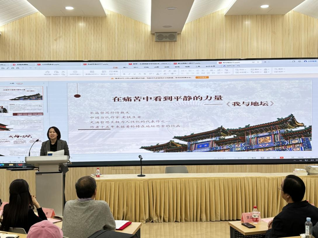 金海月老师满怀深情地向学生们推荐了史铁生的杰作《我与地坛》。这部作品充满了关于生命、苦难与希望的哲理性反思,凝聚了史铁生十五年轮椅生涯的深刻思考,细腻地描绘了他与地坛的深厚情感,以及在其中对生死的深刻体悟和对母爱的深切感受。金老师期望学生们在课余时间翻开《我与地坛》,跟随史铁生的笔触,走进地坛,一同探索生活深层次的意义,以积极向上的生命态度汲取面对逆境的力量,珍惜平凡的日常,感悟父母之爱的深远。