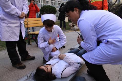 根据演习程序,参演人员分为保卫处接报警、灭火组、疏散组、接车组、警戒组、信息组、学生组、水电保障组、消防保障组、医疗组、双榆树消防中队11个小组。参演人数306人,其中保卫处8人,后勤服务集团30人,校医院4人(救护车1辆),人文学院49人,国际商学院169人、信息科学学院14人、高级翻译学院10人、外国语学院17人,双榆树消防中队5人(消防车1辆)。