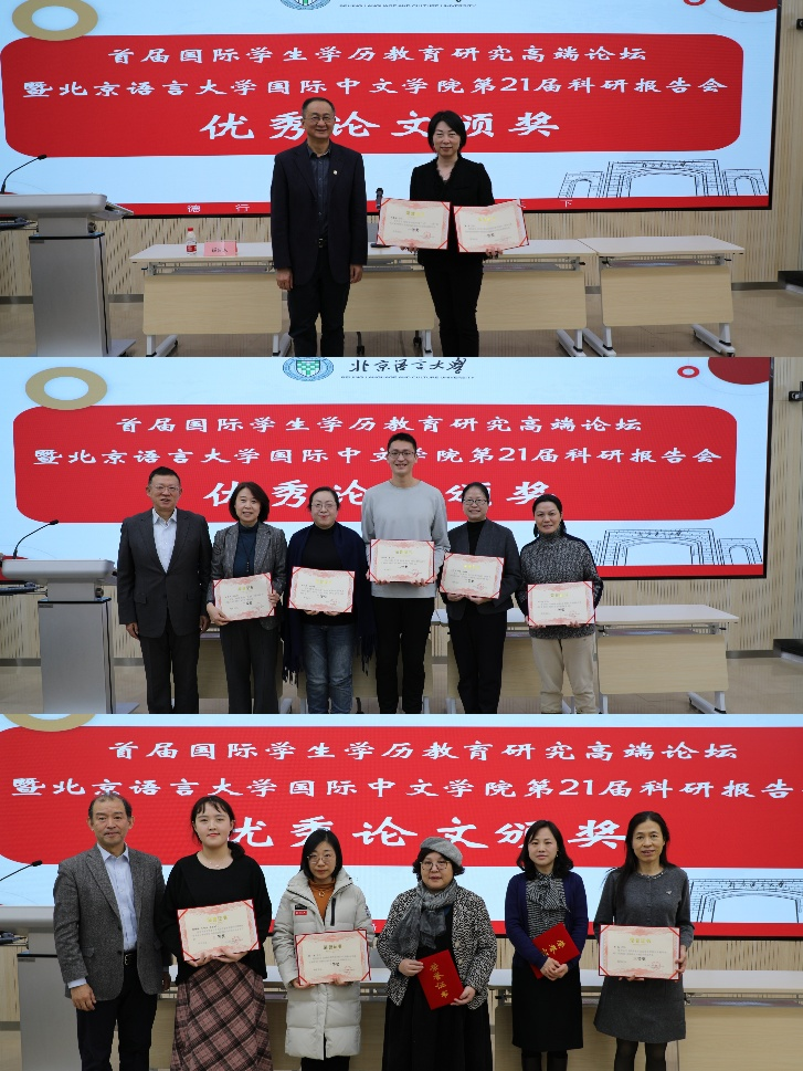 随后魏晖副书记、马箭飞教授、王学松教授为优秀论文获奖者颁奖。国际中文学院党委书记梁彦民主持开幕式,表示要认真学习习近平主席向2024世界中文大会致贺信精神,更好地总结学科建设、国际中文学历教育、国际中文教育专博及高层次人才培养体系建设的经验,通过论坛与报告会,交流思想,更新观念,凝聚共识,抖擞精神,更好地推进国际中文学历教育发展创新。
