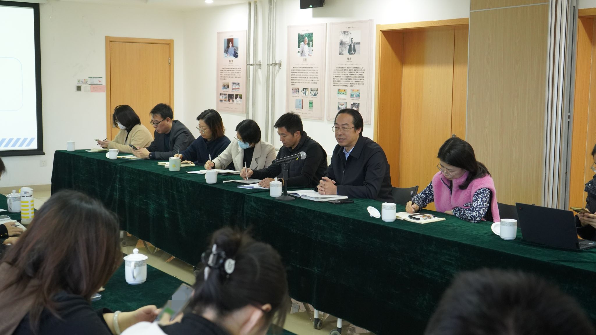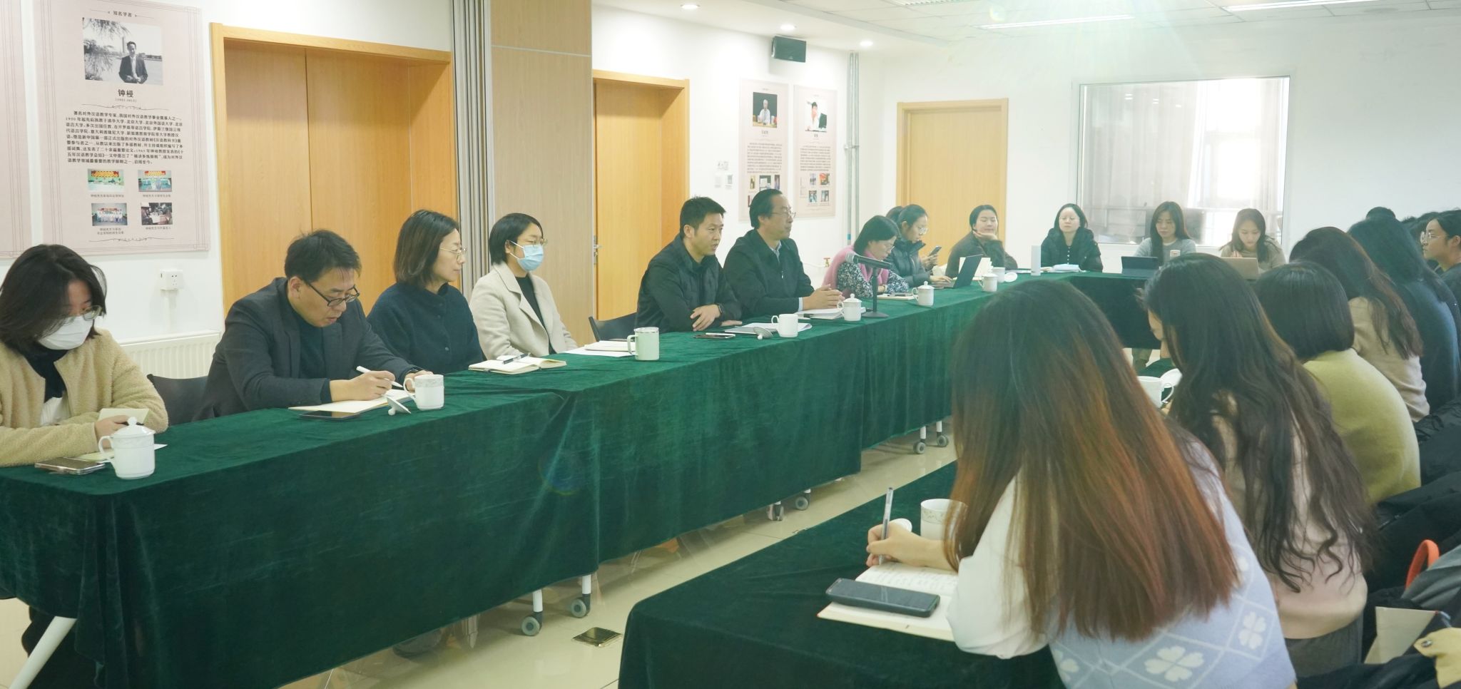 会上,五个辅导员工作室主持人高睿璇、马铖、玄铮、王晶、高美娟依次进行汇报。一年来,“多语+”工作室围绕讲好中国故事、传播中国声音、提升工作能力等目标,进行了丰富多彩的学业帮扶、就业指导、党团班建设探索,受到同学好评。“年轮”工作室围绕育人为本、育己为进的定位,深入思考学生和辅导员面临的问题,提出了集成创新、资源共享、技术赋能的工作思路,创设了“年轮”建设模型,开展了咨询、简历指导、经验交流等活动。“青行”工作室推动学校小课堂和社会大课堂紧密联动,深化理论研究与实践探索,带领辅导员共同成长,进一步拓展工作室工作实效。“职网”工作室坚持问题导向,针对就业工作中的一系列实际困难,理清问题,深入研究,努力搭建资源之网、信息之网、捕梦之网和互助之网,引导学生建立正确的就业观、提高就业本领。“‘五色交辉’文明互鉴”工作室围绕推动中外文化交融、提升学生跨文化交际能力、加强辅导员队伍建设、促进国际中文教育发展和文化多样性等方面进行了积极探索,工作室逐渐发展成为了学院中外文化交流的关键力量。