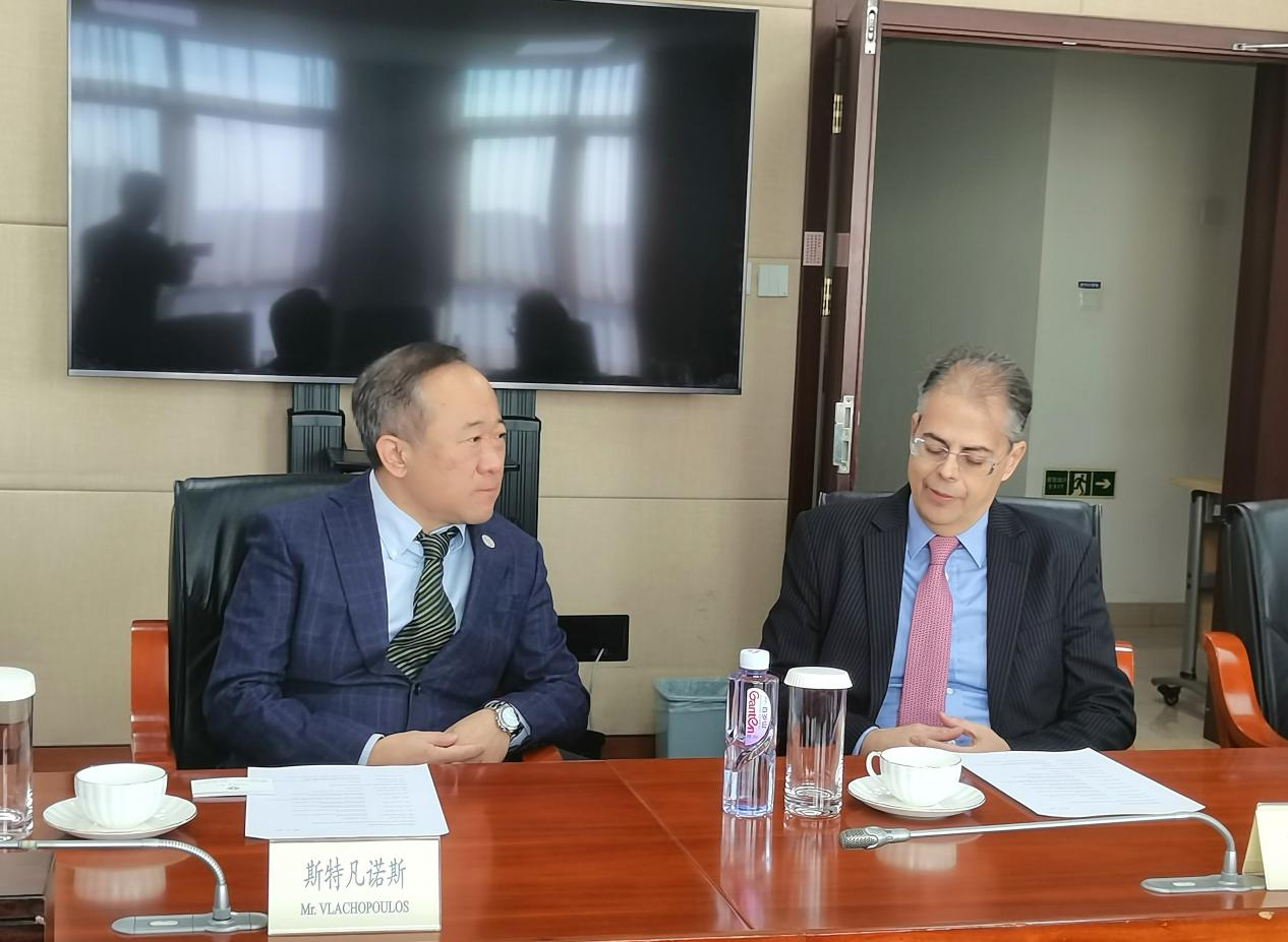 会谈前,段鹏校长在国家外国专家局分别会见希腊驻华大使埃夫耶尼奥斯•卡尔佩里斯(Evgenios Kalpyris)、爱奥尼亚大学校长弗洛罗斯(Andreas Floros)以及希腊汉学中心代表团,就双方合作前景及希腊汉学中心未来建设发展进行探讨和交流。