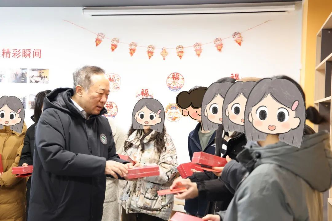 随后,段鹏校长代表学校为同学们发放慰问红包和新年日历,一份份精美的礼物,一声声亲切的话语,承载着学校对同学们深切的关心与期待。