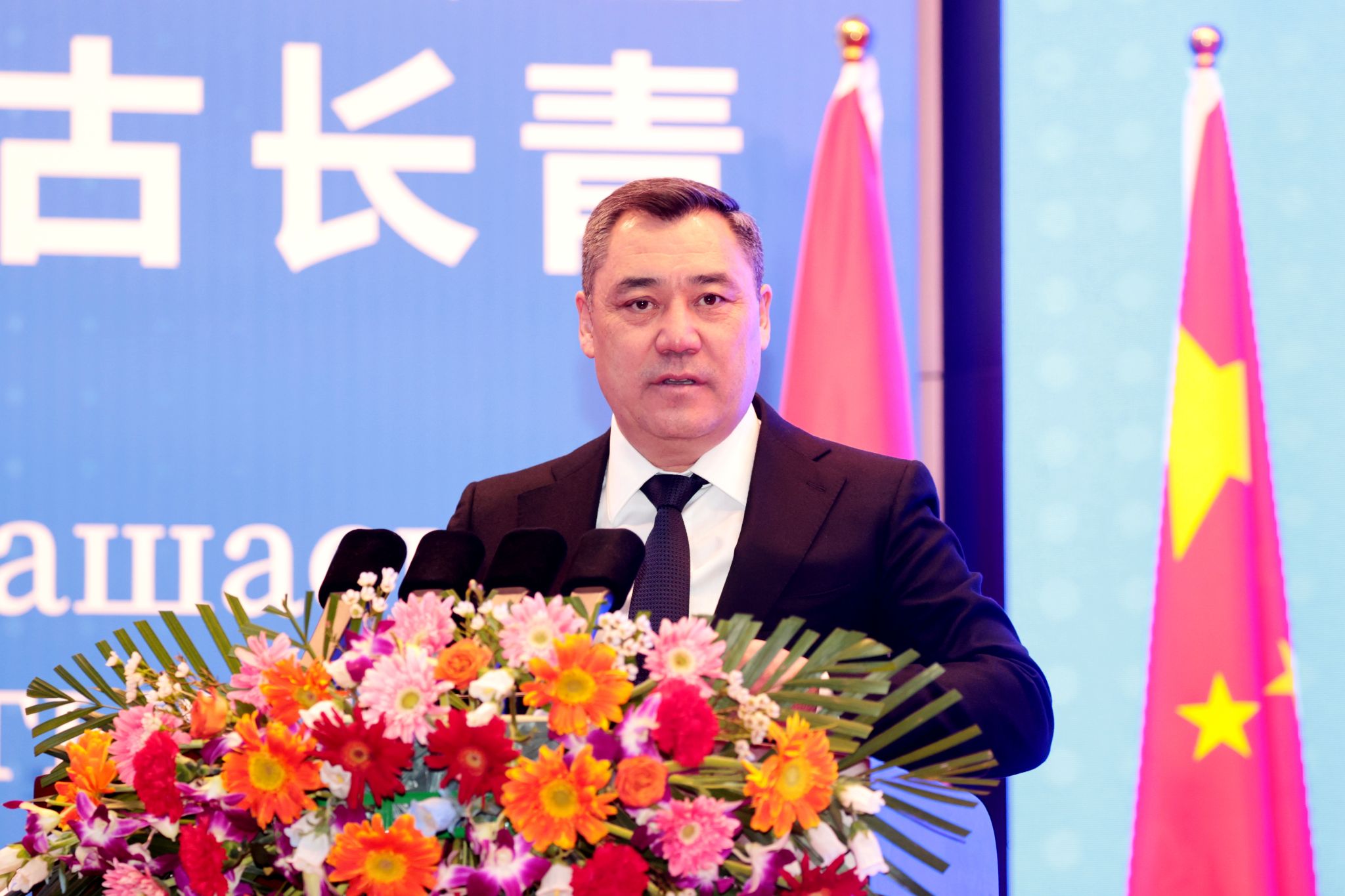 扎帕罗夫总统发表了重要讲话,他首先对北京语言大学领导和全体师生在其对中华人民共和国进行国事访问期间精心筹办此次艾特玛托夫雕像揭幕仪式表示衷心感谢。他指出,北京语言大学作为不同文化和思想的交汇地,是一个文化交流与文明互鉴的理想平台,各国青年在这里克服了语言与文化的障碍,相互尊重、彼此共享,通过近距离的沟通与融合变得更加团结。多年来,北京语言大学为吉尔吉斯斯坦培养了一批优秀学子,他们在两国政治、经济与人文协作中发挥着积极作用,北京语言大学以先进的办学理念和丰硕的办学成果,为两国加强连接、增进友谊作出了突出贡献。他强调,吉尔吉斯斯坦与中国都拥有深厚的历史文化传统渊源,人文文化领域合作发展潜力巨大。他指出,艾特马托夫的作品承载着深刻哲理。在北京语言大学树立艾特马托夫的雕像,是对他的崇高致敬,是他之于世界文化贡献的认可,更是加强两国文化联系的明证和增进两国人民友谊与理解的重要举措,必将为加强吉中人文合作作出重要贡献,成为两国人民友谊的永恒见证。最后,总统引用艾特玛托夫的箴言,期盼在互利合作基础上,与中国开展全方位协作,共同促进两国繁荣与人民福祉。