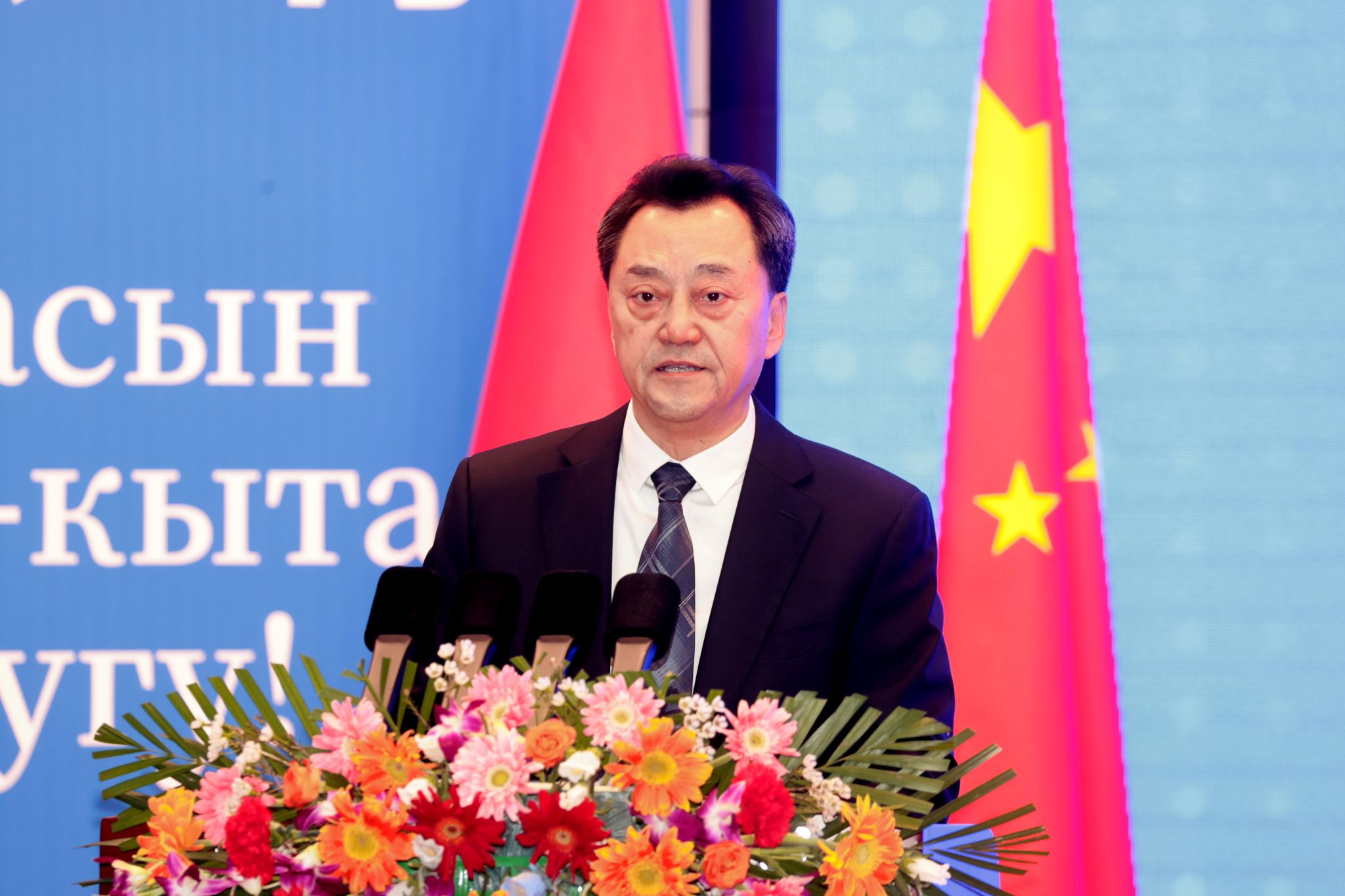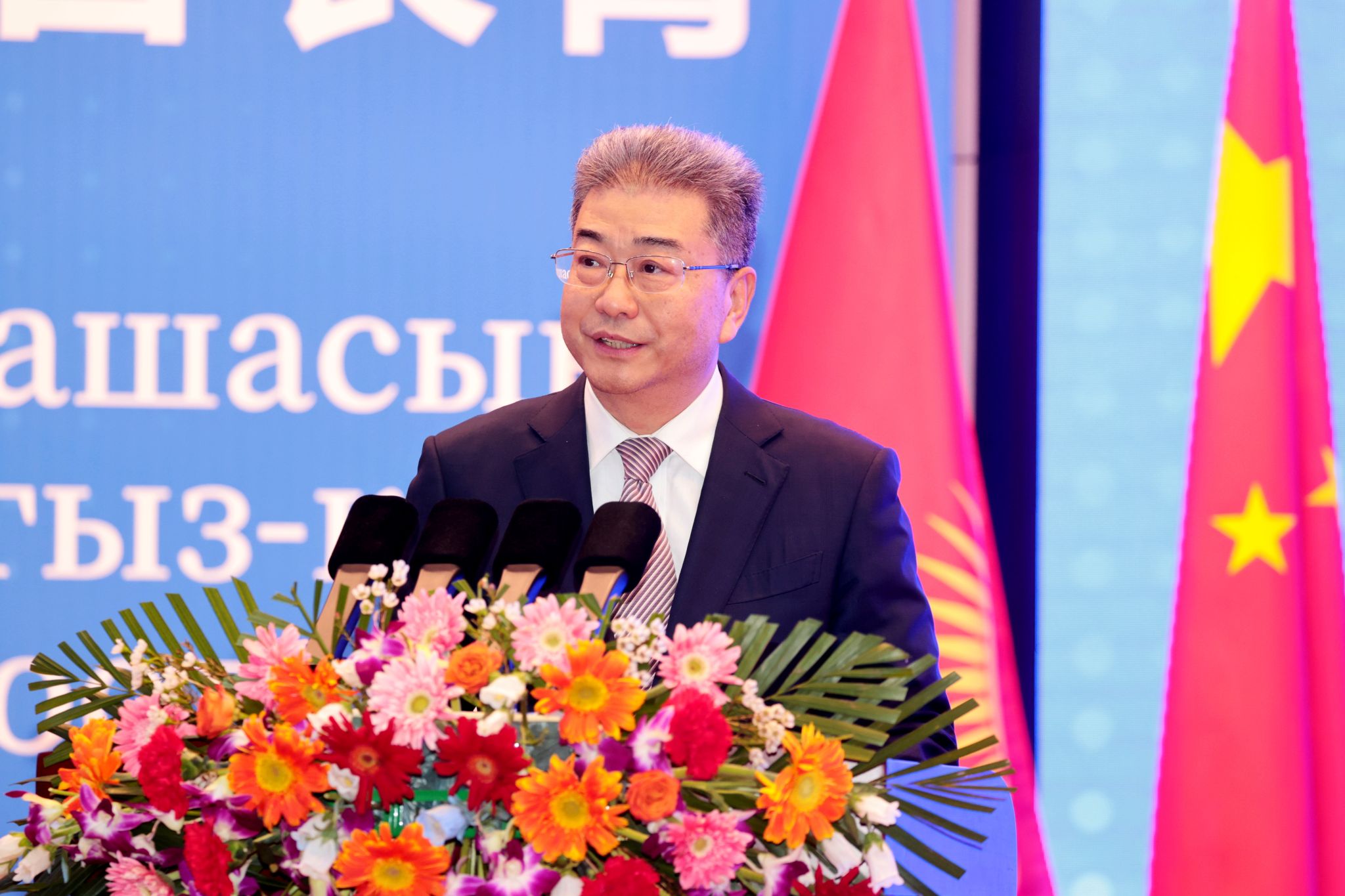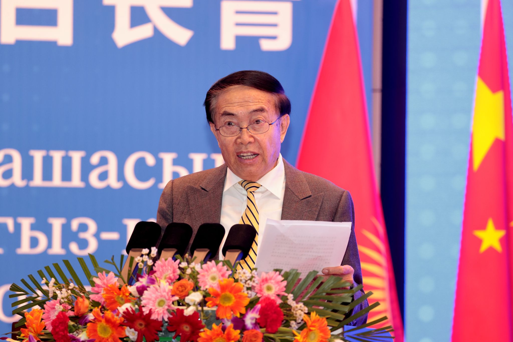 吴岩副部长代表中华人民共和国教育部,向总统阁下一行表示热烈欢迎,向长期致力于促进中吉友好和中吉教育合作的各位同仁表示诚挚感谢。吴岩副部长在讲话中指出,中国和吉尔吉斯斯坦是山水相连、唇齿相依的好邻邦、好朋友、好伙伴。在两国元首的战略引领下,双方在政治、经贸、人文等各领域的合作蓬勃发展,特别是在教育领域,两国在学生交流、高校合作、人才联合培养、语言教学等方面不断取得新成果。在“中文热”“中国文化热”在吉不断升温的背景下,中国政府鼓励中国青年学子赴吉留学,也欢迎更多吉尔吉斯斯坦优秀青年来华留学,实现双向奔赴。他指出,艾特马托夫先生以卓越的才华和深邃的思想,为世界文学宝库增添了璀璨的明珠。艾特马托夫雕像在北京语言大学揭幕,不仅是为纪念这位伟大人物,更是为传承中吉友好,必将有力促进两国文明互鉴和人文交流。希望中吉两国高校进一步密切联系、加强合作,做中吉交流的推动者。希望两国青年相互学习、共同成长,做中吉友谊的传承者。中国教育部愿与吉方一道,共同落实好两国元首共识,携手努力、相向而行,为深化两国文明互鉴、增进两国人民福祉、促进两国双边关系发展作出更加积极的贡献。
