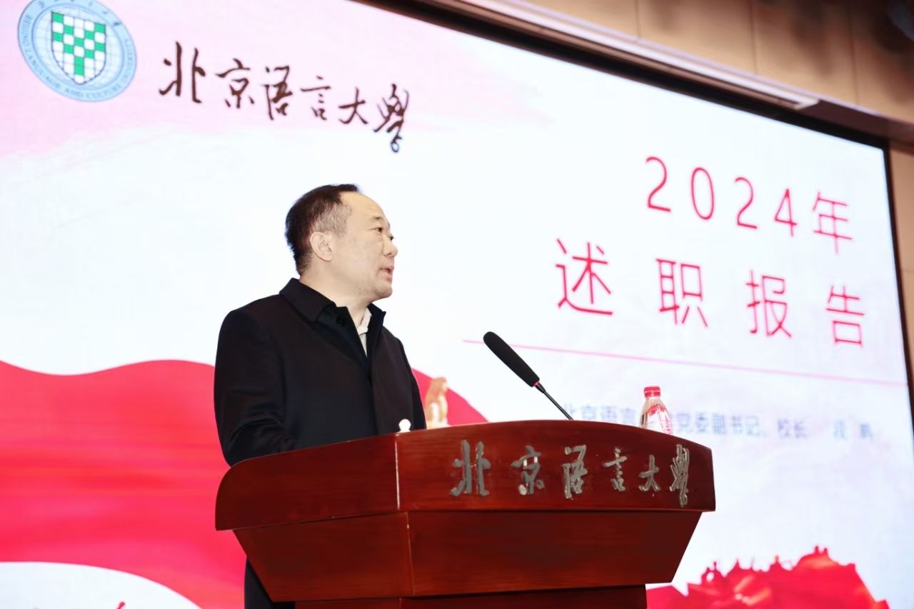 段鹏校长在个人述职中报告了始终牢记习近平总书记对学校事业发展的关怀嘱托,认真学习贯彻新时代党的创新理论和教育部怀进鹏部长的指示精神,坚持巩固拓展办学优势特色,积极服务国家战略需求,坚持深化改革创新,以攻坚克难、锲而不舍的奋斗精神推动各领域取得多项重要办学成绩,推动构建教育对外开放的新格局,为教育强国建设贡献北语力量。他指出,新的一年将进一步加强对习近平新时代中国特色社会主义思想的深钻细研,用党的创新理论和贯穿其中的立场观点方法分析解决学校实际问题,把实现好、维护好、发展好广大师生的利益作为根本标准,广泛地汇集师生智慧、凝聚师生员工合力推动发展。