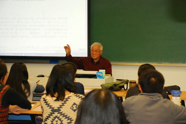 11月22日下午,著名语言学家、中国社科院语言研究所研究员郑张尚芳先生在主楼917教室为我们带来了一场精彩的讲座。讲座主题是上古汉语长短六元音系统。郑张先生长期从事汉语方言、古音、汉藏语言比较研究,对汉语上古音和中古音颇有研究,他所建立的上古音系统被海内外汉藏语学界认同,成为上古音构拟八大家之一。其专著《上古音系纲要》被译为英文在法国巴黎出版,《上古音系》在国内出版后引起学界的高度关注。现为中国语言学会、汉语方言学会、国际汉语语言学会会员,中国音韵学研究会理事、学术委员。
