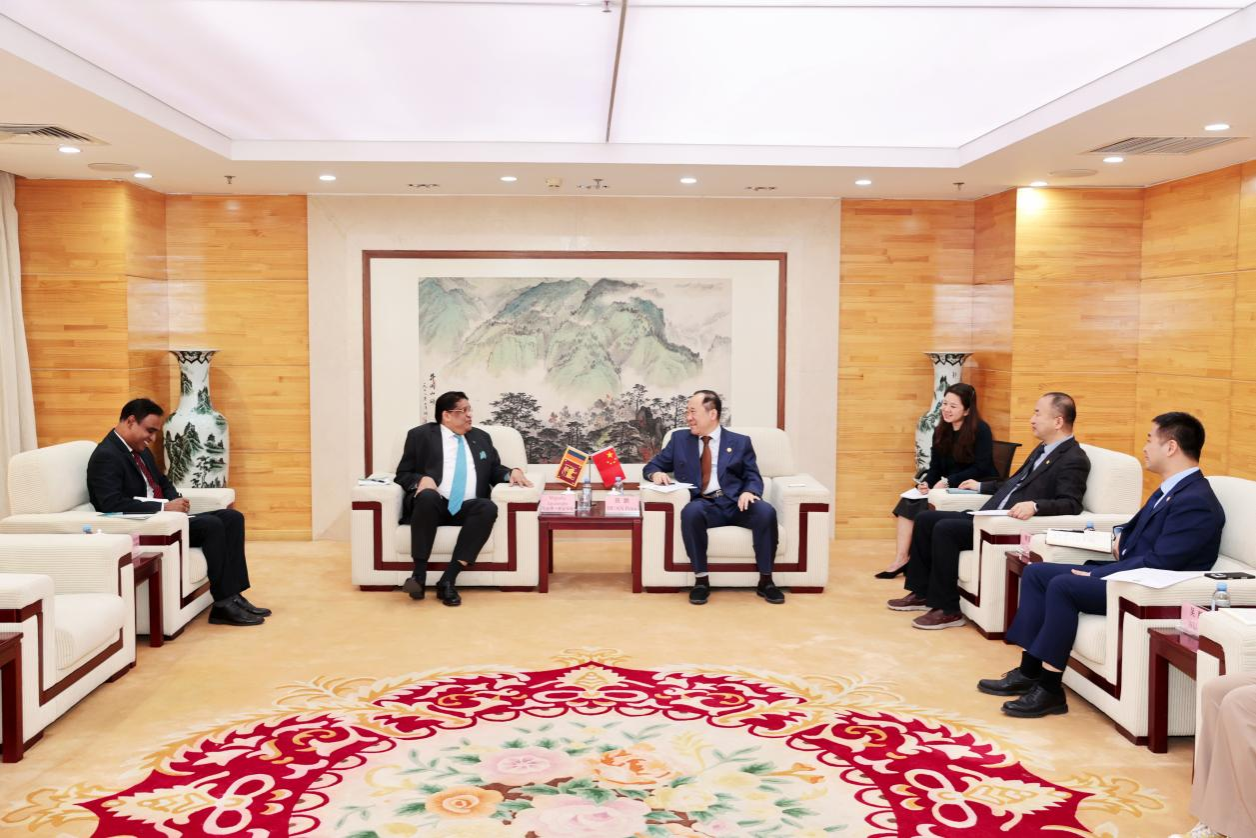 段鹏校长代表学校对北语校友马金达·贾升和大使重返母校表示热烈欢迎。他指出,自建校以来,学校培养了30万名懂汉语、熟悉中华文化的外国留学生,其中包括近200名斯里兰卡学生。学校培养了马金达·贾升和大使、俄罗斯驻华大使伊戈尔・莫尔古洛夫、古巴驻华大使白诗德等诸多杰出的大使校友。段鹏校长向大使介绍了近年来学校的发展情况,现有哈萨克斯坦、泰国、日本三个海外分校,27所孔子学院(课堂),是我国中外语言教育和中外人文交流的重要窗口。段鹏校长对大使作为资深外交家为教育和文明互鉴做出的实质努力表达敬意,表示学校会积极落实今年斯里兰卡总统对中国进行国事访问期间,两国元首达成的深化教育合作的共识,加强两国大学、科研机构的交流合作和人才培养,增进两国人民友谊。