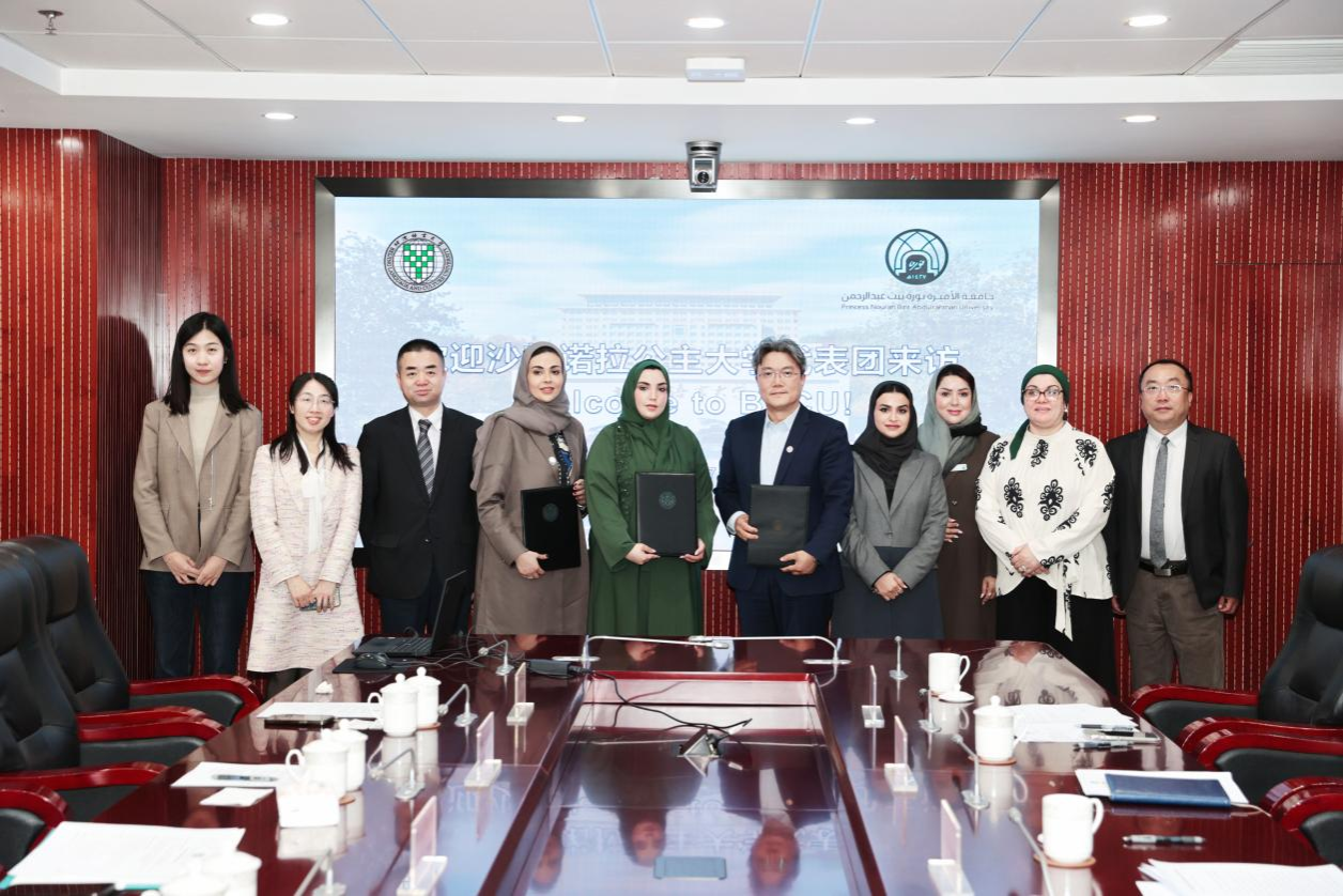 张宝钧副校长首先代表学校对代表团的来访表示热烈欢迎。他指出,作为新中国最早开展国际中文教育的专业院校,北京语言大学凭借逾六十载的办学积淀,已发展成为中国规模最大、历史最悠久且师资体系最完备的国际中文教育重镇。学校始终以构建语言文化交流桥梁为使命,与沙特多所高校保持着密切合作,其中与诺拉公主大学的协同创新成效尤为显著——双方共同打造的商务汉语专科项目不仅开创了中东地区中文专科教育先河,更通过“语言+商务”的特色培养模式,为沙特“2030愿景”输送了兼具汉语能力与经贸素养的复合型人才。迄今已培养39名优秀毕业生,现有22名在校生,项目成果斐然。他强调,作为中国最早开展留学生教育的高校,北语在国际中文教育领域创造了多项“第一”,从首部对外汉语教材的编纂到HSK考试的开发,构建了完整的国际化人才培养体系。在两国关系持续深化的新时代背景下,他希望两校能进一步拓展合作空间,为促进中沙人文交流作出更大贡献。