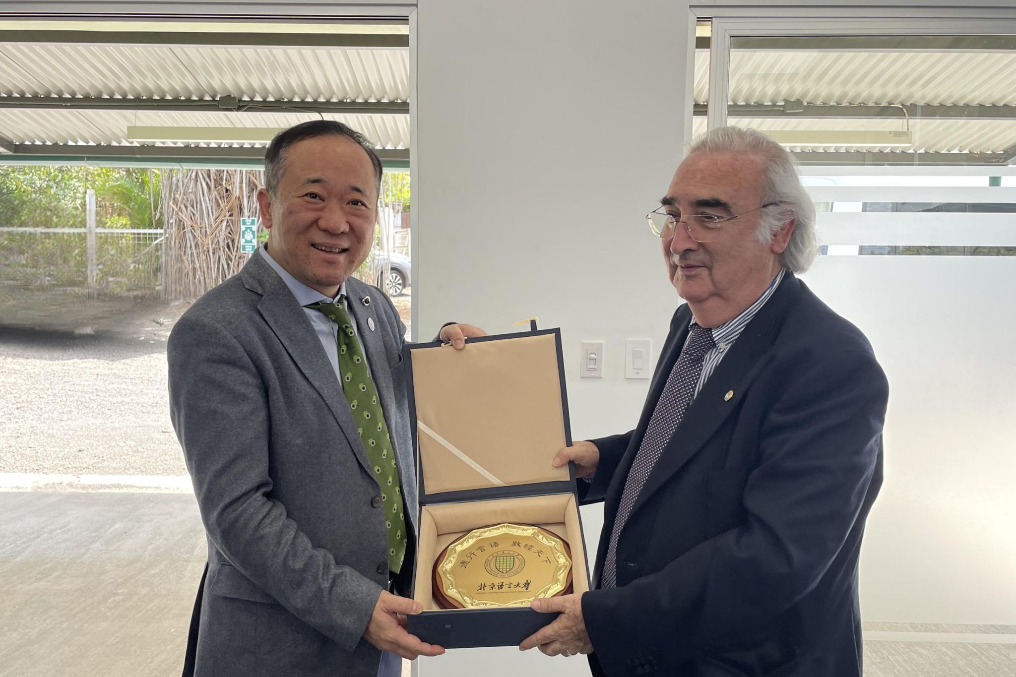 访问哥斯达黎加期间,段鹏校长与联合国和平大学校长弗朗西斯科·罗哈斯·阿拉韦纳举行会谈,双方围绕海南校区开设联合国和平大学硕士、博士项目展开磋商,聚焦全球安全、人工智能及国际组织研究等前沿领域,并计划设立“联合国和平大学-北语联合办事处”,推动学分互认与师资共享,扎实推动多项合作落地。