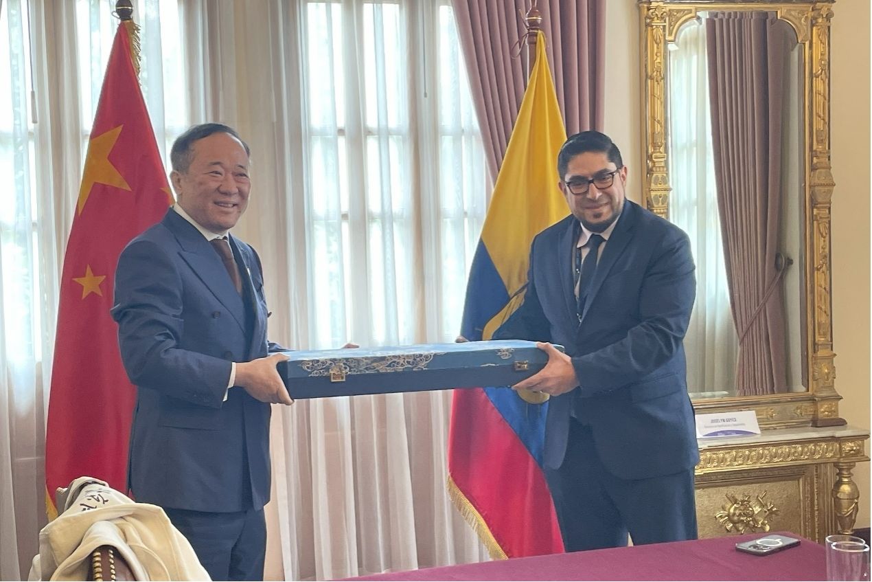 3月30日至31日,段鹏校长率团访问厄瓜多尔。在厄瓜多尔外交部,段鹏校长与主管国际合作与交流事务的外交部副部长克里斯汀娜·卡马乔、高等教育与科技部副部长安德列斯·佩纳菲尔等举行会谈。卡马乔副外长对代表团一行到访表示欢迎,强调厄方高度重视与中国的战略伙伴关系,并回顾北语与厄驻华使馆近期频繁交流所取得的务实成果。她指出,厄外交部近年来积极推进教育国际合作,重点推介“中国书桌”项目,旨在为厄学生争取更多学习中文和了解中国的机会,同时希望与北语合作争取更多奖学金项目,让更多厄瓜多尔同学能够亲身感受中国、理解中国,培养未来中厄友好的中坚力量,并合作开展外交官培训,支持在两国元首见证下设立厄瓜多尔中国研究院。