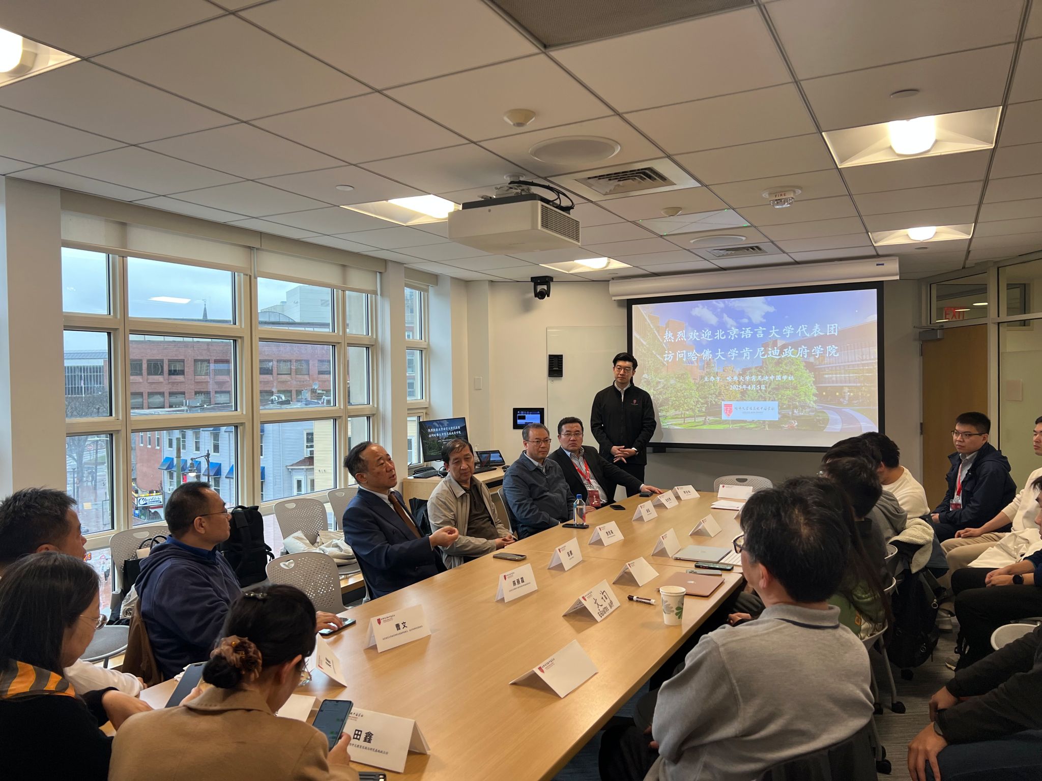 随后,段鹏校长访问了哈佛大学肯尼迪政府学院,并与该院中国学生进行充分交流,段校长勉励同学们努力学习,做好中美文化交流的友好使者和桥梁纽带。