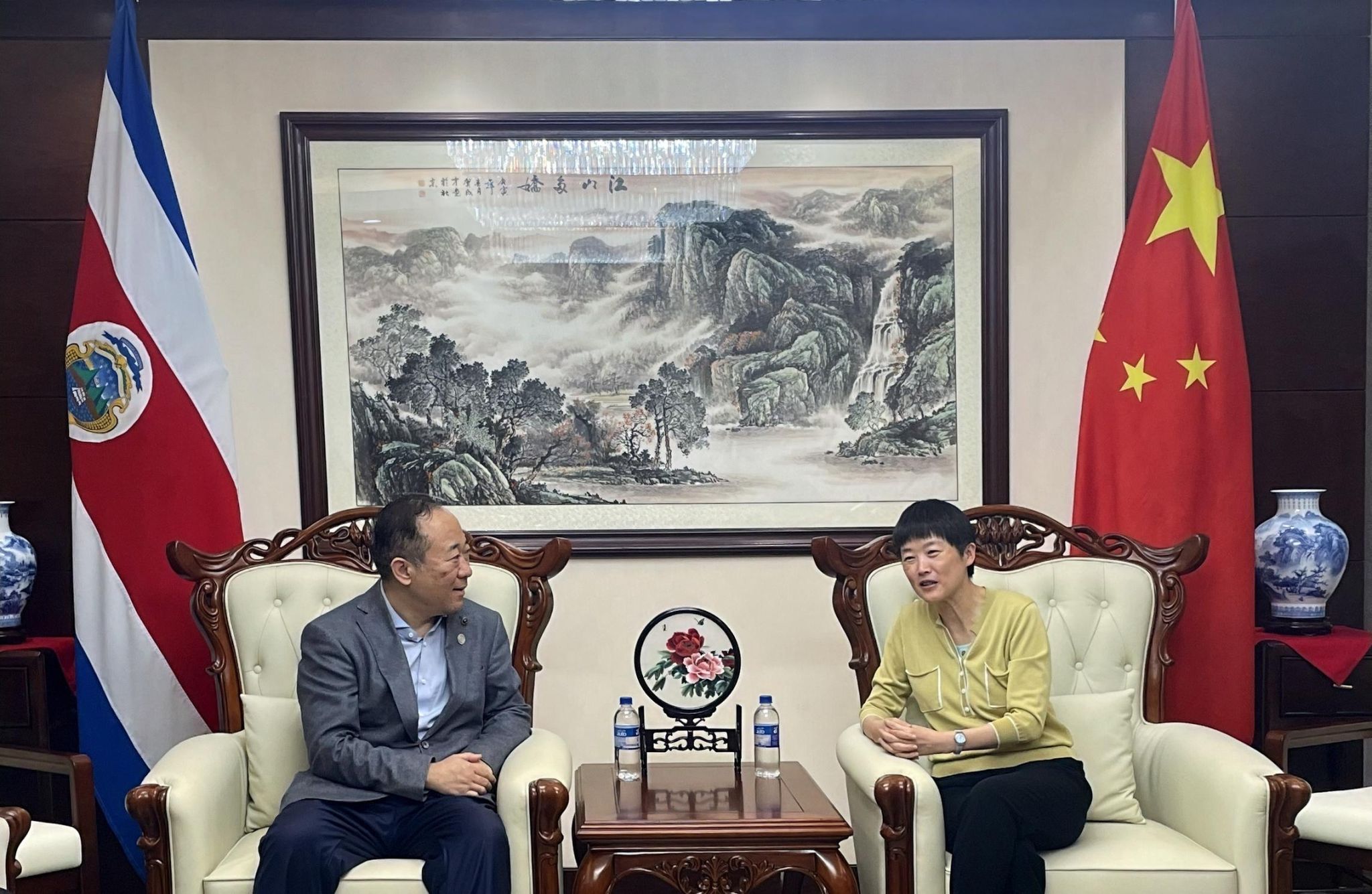 访问期间,段鹏校长率代表团拜会了中国驻哥斯达黎加大使馆王晓瑶大使,汇报我校办学情况,以及与哥斯达黎加教育机构的合作发展规划。王晓瑶大使表示,驻地领馆将对北语在哥开展中文教育文化交流、合作办学项目以及共同开展合作研究给予大力支持。