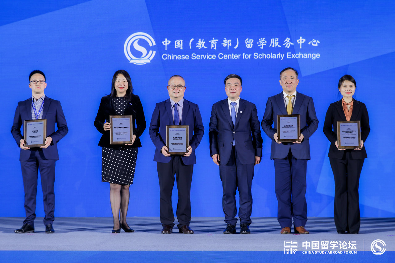 在中国国际教育巡回展暨中国留学论坛晚宴上,段鹏校长代表学校领取了“中国留学服务中心支持伙伴”奖牌。