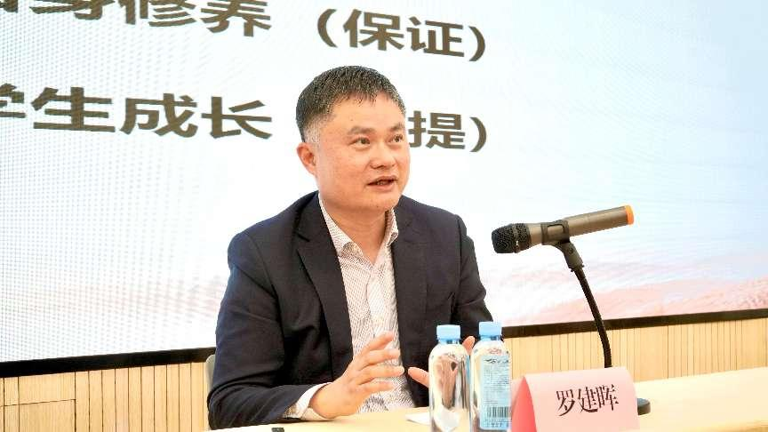 高校辅导员如何从加强作风建设汲取智慧和力量,不断推进思想政治工作高质量发展呢?罗建晖结合高校工作实际,立足弘扬“教育家精神”,期待各位辅导员同事以敏锐的政治眼光掌握形势政策,要善于运用政治眼光分析和解决问题,通过理想信念教育引导青年学生在政治方向的判断以及政治道路的选择上进行深入思考,教育学生树立正确的世界观、人生观、价值观;以先锋榜样的目标提升自身修养,要不断勤奋学习,在工作中补齐短板,成为行家里手、业务能手;以大爱的初心使命关心学生成长,要厚植教育情怀、坚守育人初心,关注学生成长需求,做一个青年学生信赖和喜爱的教育工作者,实现教师“在成就他人基础上成就自己”的职业理想。