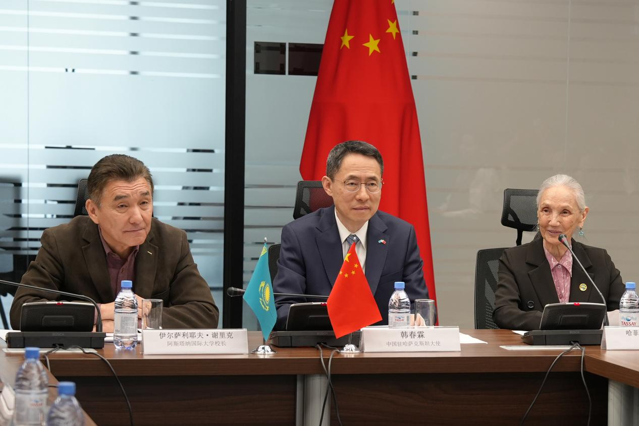北语新闻网4月21日电(通讯员 刘现强 刘一萱 摄影 中新社 单璐)4月20日,值第16个国际中文日之际,由中国驻哈萨克斯坦大使馆主办、北京语言大学哈萨克斯坦分校承办的“国际中文教育标准指导下的中亚教师教学能力提升研讨会”在哈萨克斯坦分校举行。中国驻哈大使韩春霖、阿斯塔纳国际大学校长伊尔萨利耶夫·谢里克、哈萨克斯坦著名汉学家哈菲佐娃教授出席开幕式并致辞,北京语言大学校长段鹏通过视频致辞。北京语言大学哈萨克斯坦分校哈方院长萨乌列主持开幕式,中方院长刘现强全程主持研讨会并作闭幕发言。