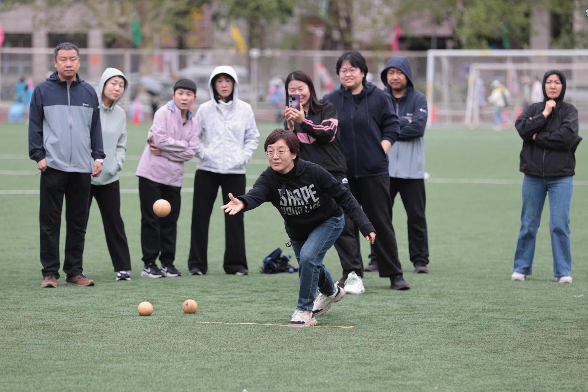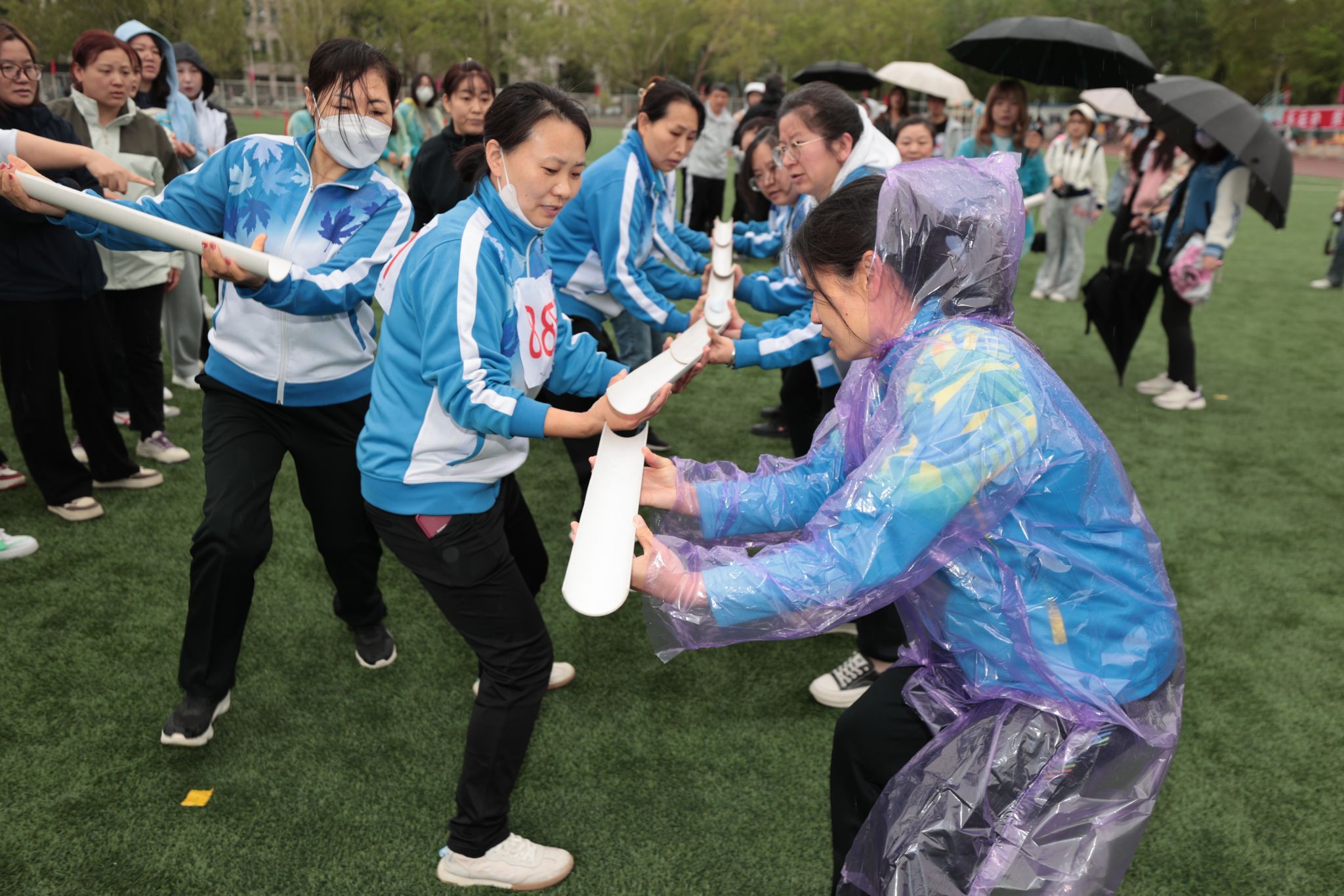 趣味赛场同样精彩纷呈,“同心鼓”项目考验团队协作,各参赛队伍全力以赴,队员们紧密配合,动作整齐划一,赢得了观众的阵阵掌声。在“能量传递”赛道上,各学院参赛选手用U型管接力运球,他们小心翼翼,动作精准,零失误表现让人印象深刻。