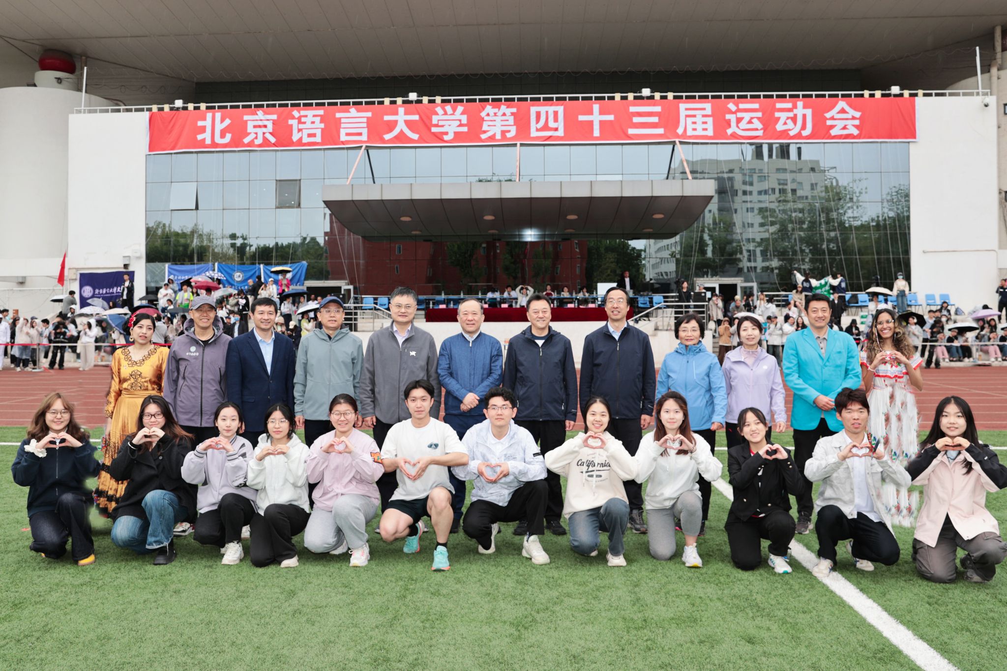 北语新闻网4月19日电(通讯员 陈思远 摄影 魏达)4月18日,北京语言大学第四十三届运动会在田径场举行。党委书记倪海东,校长段鹏,党委副书记魏晖,党委副书记、纪委书记罗建晖,副校长黄益方,党委常委、统战部部长吕静,党委常委、组织部部长张健,校长助理、研究生院兼文学院院长郭鹏,校长助理、学校办公室主任李志坚出席开幕式,开幕式由黄益方副校长主持。