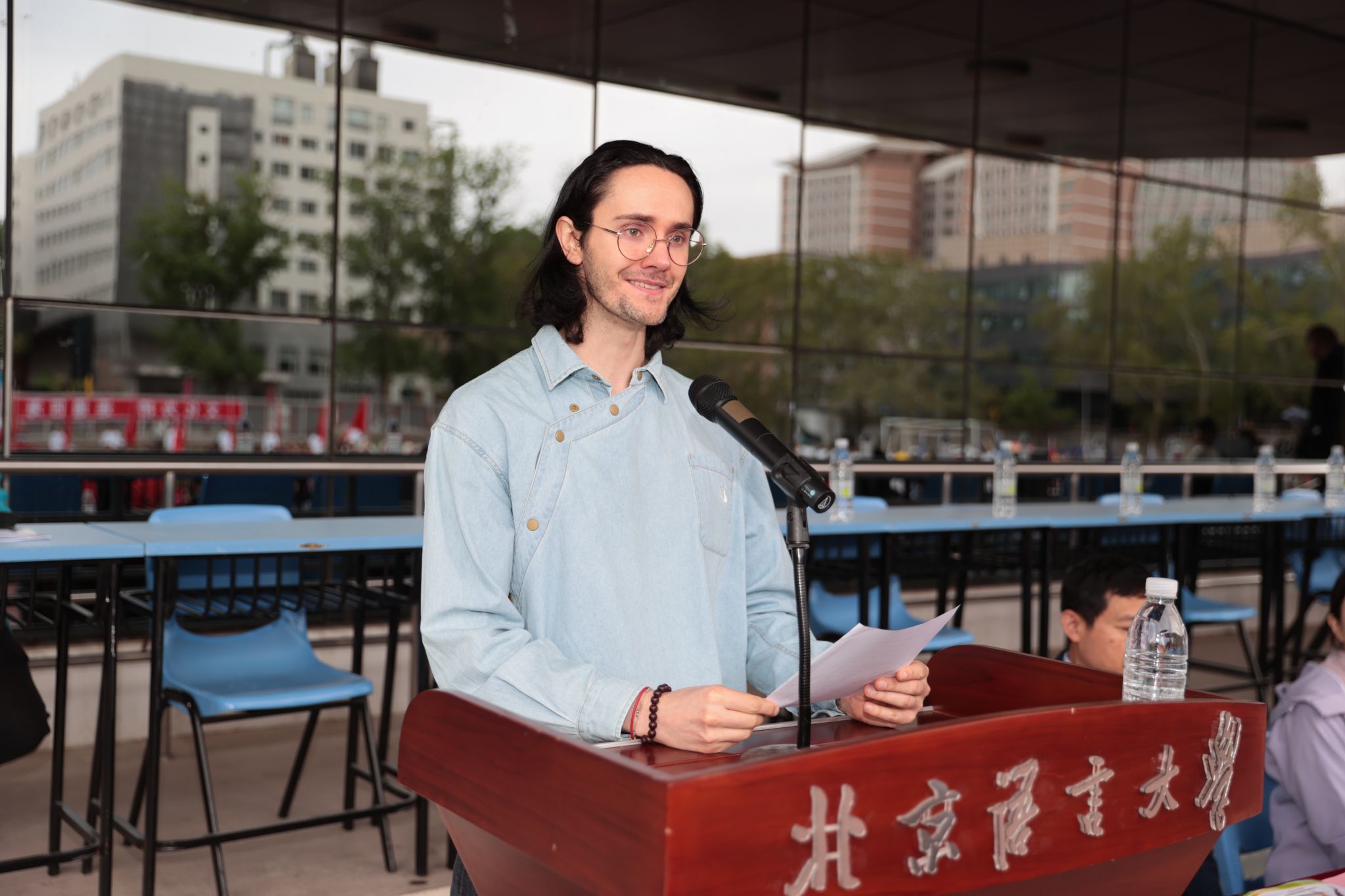 汉学与中国学学院瑞士留学生王曦芠代表全体运动员发言,外国语言文化学院2023级西班牙语专业本科生孙英博代表裁判员庄严宣誓。倪海东书记为获得2024年度《国家学生体质健康标准》测试优秀院系的商学院、新闻传播学院、国际关系学院颁奖。