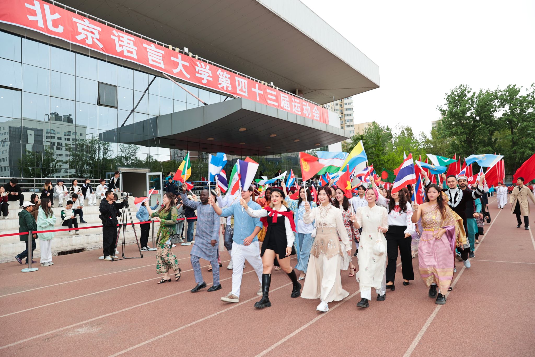 本次运动会以“快乐、健康、和谐、团结、向上”为主题,旨在深化体教融合,弘扬体育精神,进一步落实“健康第一”的教育理念。通过竞技与趣味兼具的赛事设计,激发师生参与热情,强化团队协作意识,彰显北语人“拼搏、包容、创新、卓越”的精神内核。本次运动会不仅是竞技的舞台,更是文化交流的盛会。来自不同国家和文化背景的中外学子齐聚一堂,在协作中深化理解,在比拼中增进友谊。赛场上,他们挥洒汗水,展现青春的活力与激情;赛场下,他们相互交流,分享各自的文化与故事,让多元文化在这里碰撞出绚烂的火花。