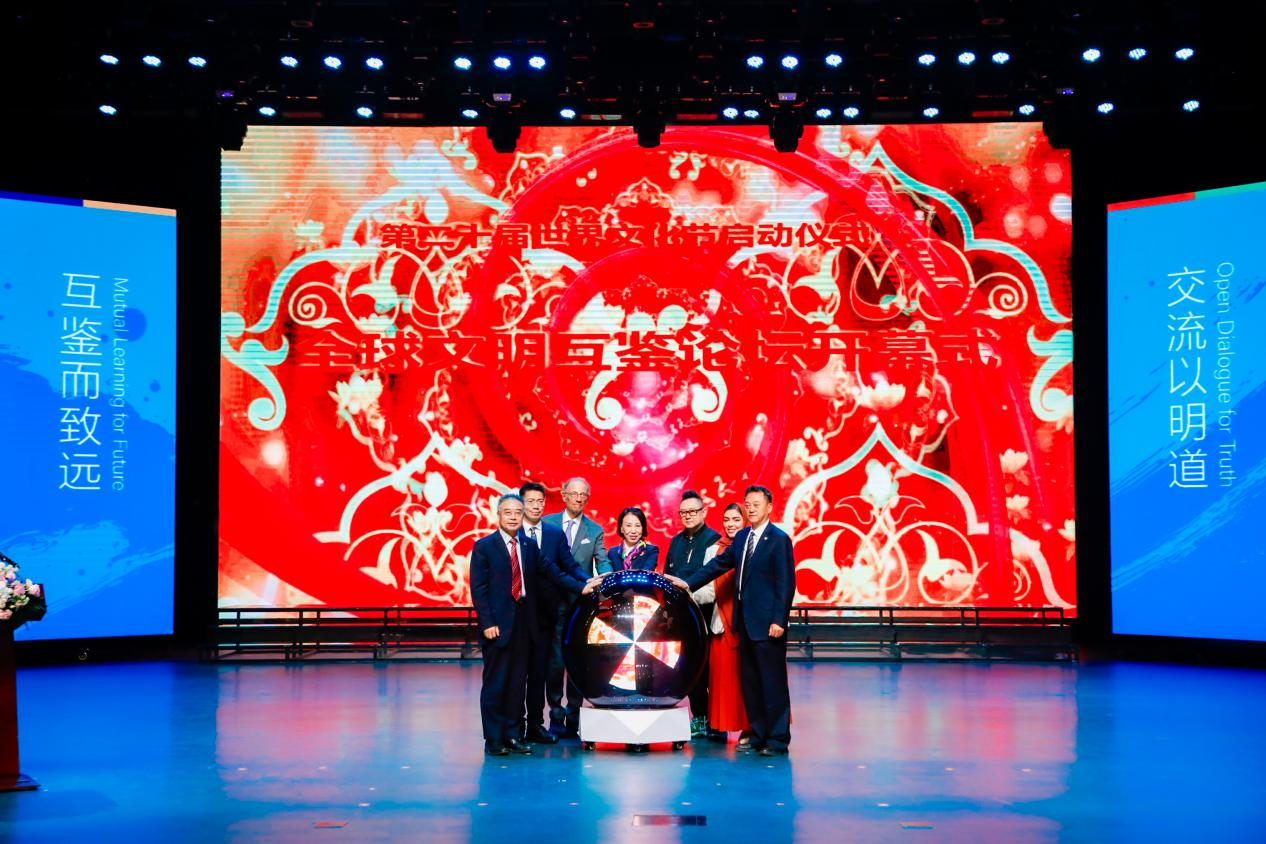 随后,在现场观众的共同见证下,倪海东书记与现场嘉宾一同登台点亮启动球荧幕,标志北京语言大学第二十届世界文化节暨全球文明互鉴论坛正式拉开帷幕。