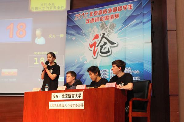 11月15日晚,第四届北京高校留学生汉语辩论邀请赛半决赛在我校逸夫报告厅成功举行。来自我校的留学生辩论队战胜对手北京科技大学,成功晋级总决赛。