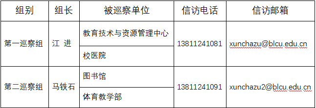学校党委第二轮巡察联系方式一览表