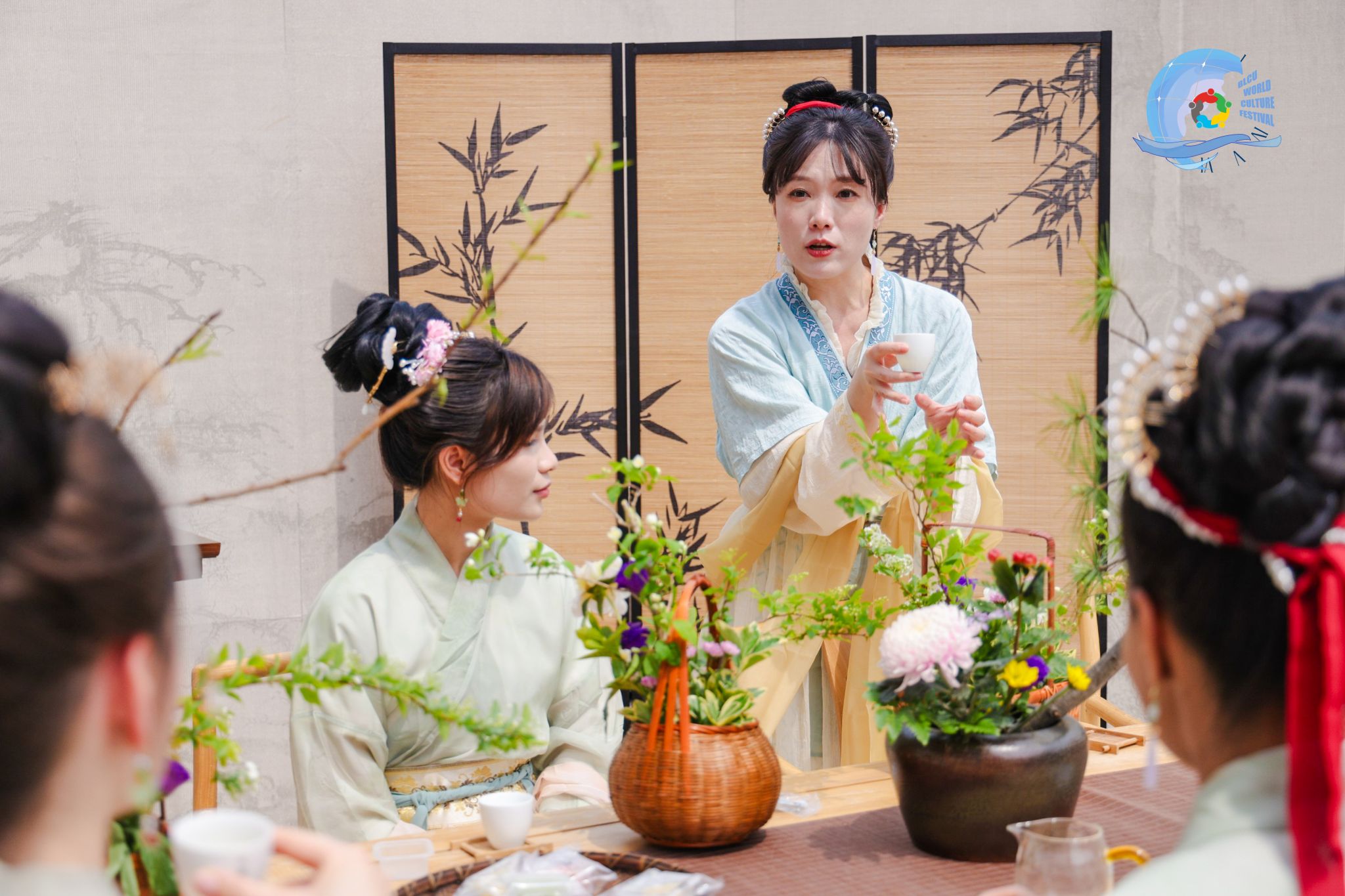 在中华文化展区,游客们不仅可以亲身体验传统茶艺、国风插花等传统国风技艺,还可以将典雅清隽的汉服穿在身上,将芬芳氤氲的香囊捧在手心,沉浸在传承千年的文化氛围中,感受中华优秀传统文化的深厚底蕴。