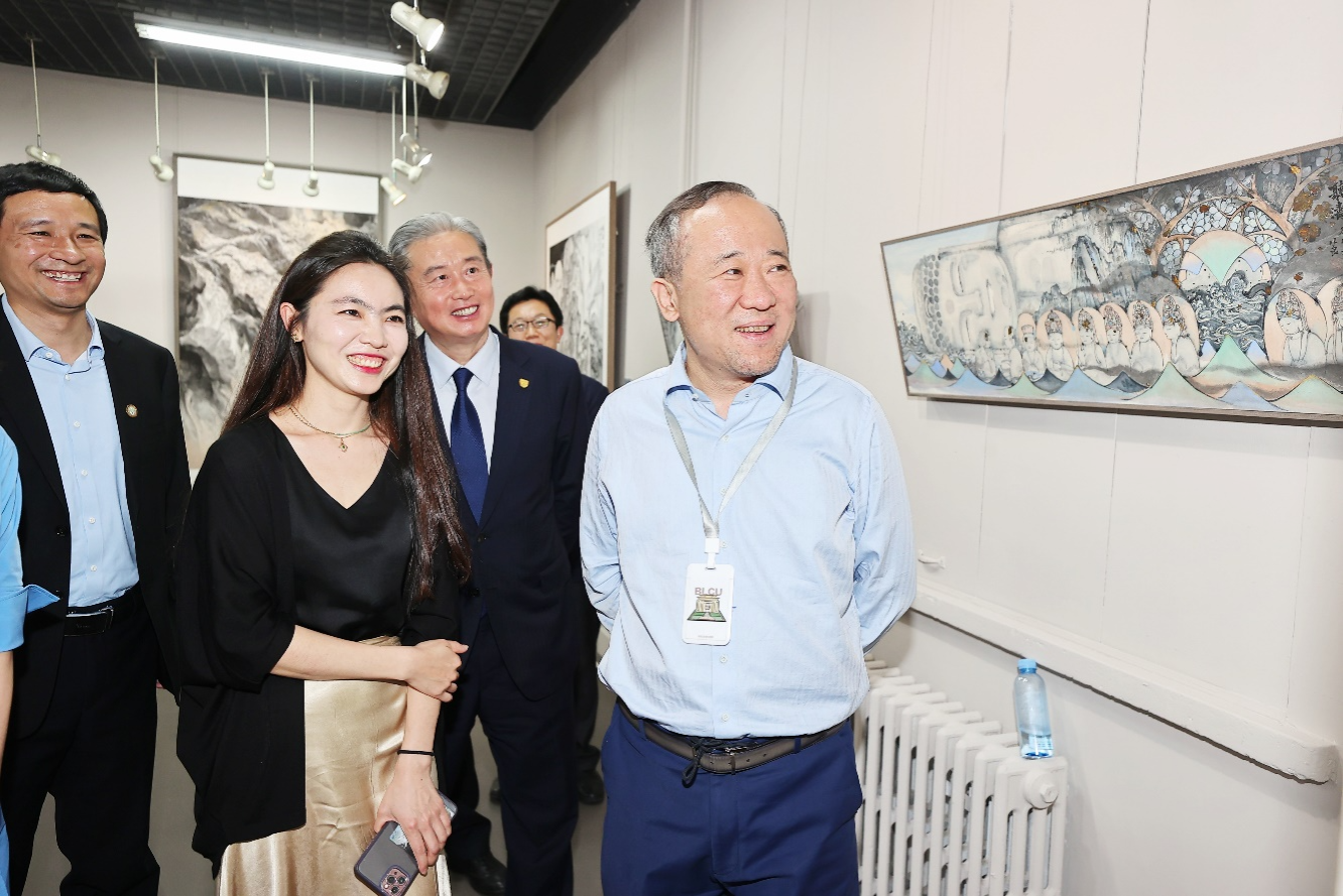 北京语言大学艺术学院自2014年成立以来,不忘初心、牢记使命、挺膺担当,坚持以国际艺术教育与传播为特色,始终以培养具有国际艺术视野,推动人类文明互鉴的中外艺术交流使者为人才培养目标,现已成为国际化鲜明、教学成效突出、对外交流频繁的艺术研究教学型学院。世界文化节以及这次独具魅力的画展,正是北京语言大学建设高等教育国际化办学实践高地和留学中国的闪耀品牌。此次展览不仅是两位教师艺术成果的集中展示,更是一次承载着深厚文化意义的艺术盛会;既是作为“小联合国”的北语人致力于讲好中国艺术故事的使命,亦是助力推动中外文明交流互鉴的担当,与世界文化节的多元理念完美契合。