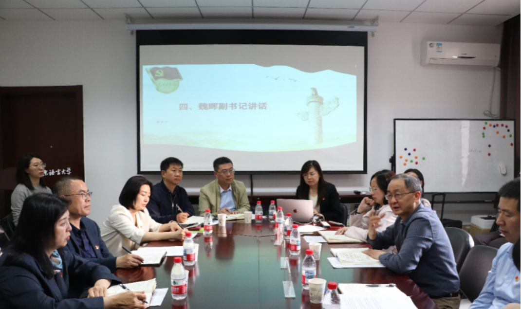 北语新闻网5月5日电(通讯员 张旭 王秋生 摄影 刘文韬)“以言传身教的方式传授知识、涵养品德,构建良好导学关系”,“通过既贴近学生生活又紧跟时代脉搏的案例,强化课程思政的育人效果”,在4月25日召开的主题党日活动上,英语和高级翻译学院英语系教师党支部的党员们,结合自身教学科研实践展开了热烈而又务实的讨论,现场气氛活跃、融洽。此次党日活动主题为“以规正身,以则明德——深入开展八项规定学习及十项行为准则对标反思”,旨在深入学习贯彻中央八项规定精神,对标高校教师职业行为十项准则,强化师德师风建设。校党委副书记魏晖参加活动。