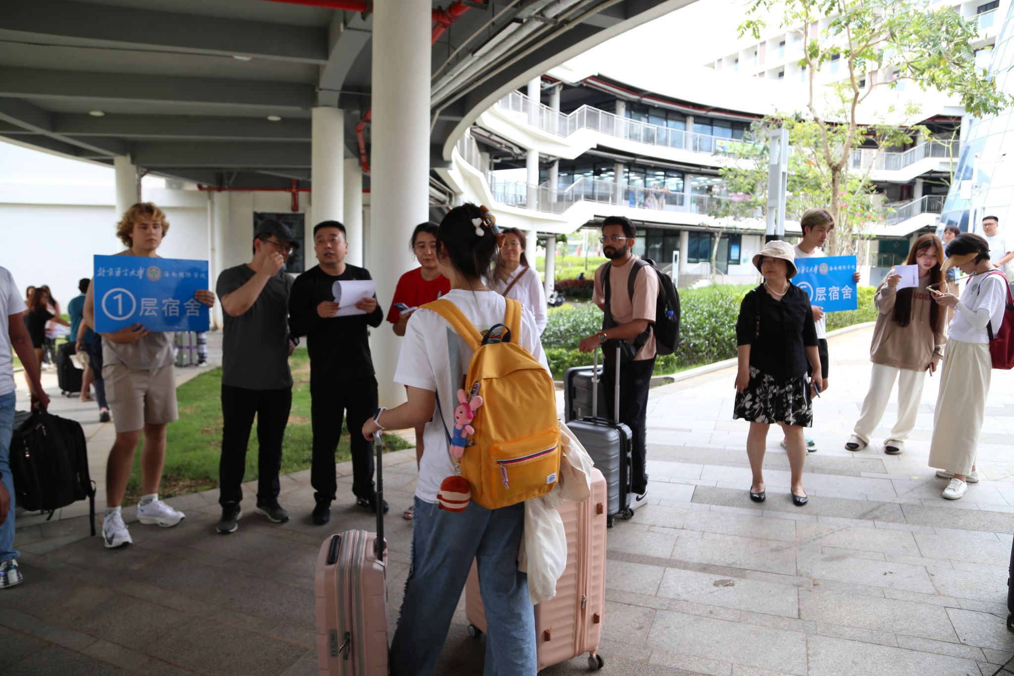 5月10日下午,师生顺利抵达海南凤凰国际机场。一下飞机,迎面而来的有海岛的椰风海韵,还有海南国际学院醒目的旗帜和接机老师们热情的笑脸。乘车到达园区门口时,早已恭候多时的学院领导、老师和留学生志愿者像迎接远道而来的亲人般帮助大家搬运行李、办理入住手续、安排就餐等。