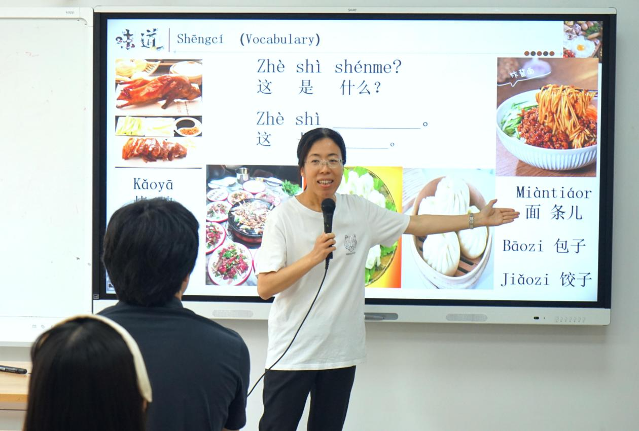 为激发日本青年学习中文、了解中国的兴趣,汉学与中国学学院还为访华团成员精心安排了一堂生动有趣的汉语体验课,汉学与中国学学院的韩阳老师和杨素静老师从中国美食出发,让日本青年在轻松欢快的氛围下快速掌握发音技巧,在课堂中,日本青年们热情投入,在欢乐中感受中文魅力。日本法政大学大四学生渡边同学提到,“我非常喜欢中国的美食,最喜欢火锅。”日本青年板谷恒希分享了此行的感受,“北京语言大学的老师和学生们都非常的热情和友善,日本同学学习汉语的难点是发音,参加这次体验课让我有很大的收获。”