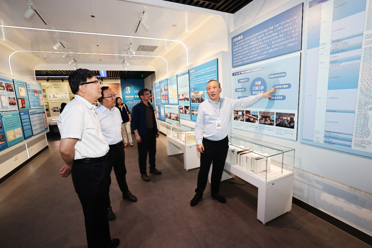 北语新闻网5月17日电(通讯员 黄娟 摄影 魏达 等)5月15日,北京市教育委员会二级巡视员葛巨众一行到我校调研语言文字工作,北京市教育委员会语言文字工作处处长杨志强、一级调研员邓鸿陪同调研。校长段鹏会见葛巨众巡视员一行,并陪同参观校史馆,介绍学校红色基因、办学成就及学科建设工作。