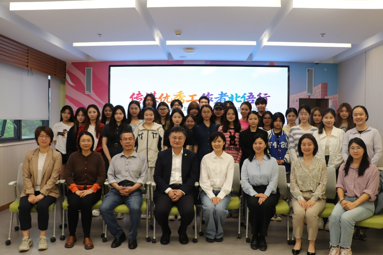 北语新闻网5月26日电(通讯员 高睿璇 薛冰延 摄影 刘文韬)5月22日,英语和高级翻译学院“传媒优秀主持人北语行”首场讲座暨播音与主持艺术班(以下简称“英播班”)主题班会举行。学校党委副书记、纪委书记罗建晖出席活动,本次活动由副院长兼24级英播班班主任温倩主持,特邀请中央广播电视总台中国之声知名记者、主持人王娴担任主讲嘉宾。