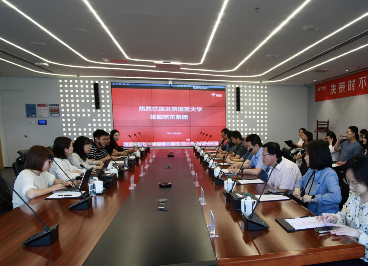 京东集团相关业务部门负责人和我校职能部门、学院负责人分别介绍了各自情况,就国际化人才培养、学生实践与就业、党建共建模式等方面进行了交流探讨。