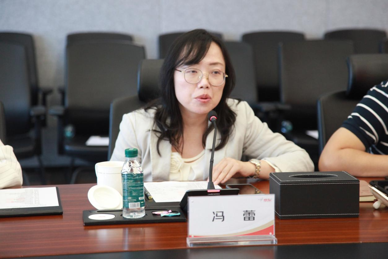 京东集团副总裁冯蕾代表京东集团向来访的北语教师表示热烈欢迎,并简要介绍了京东发展战略、特色和创新情况。结合双方特色优势,她从开展智库合作、建设实训基地、助力校园现代化治理、提供师生福利、提供校园生活便利化服务和开展党建共建合作等六个方面提出了合作意向。