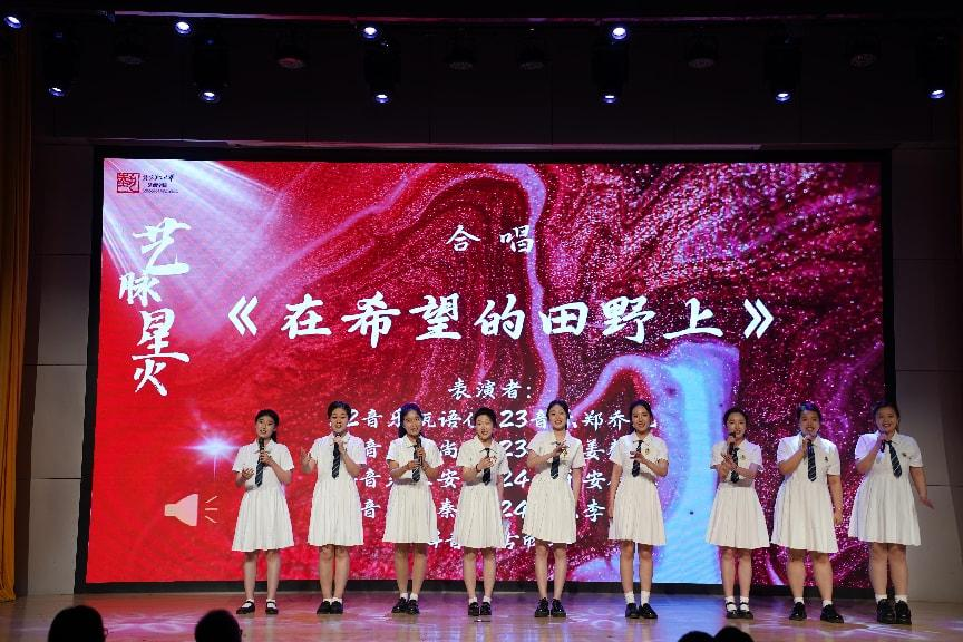 来到“复兴年代”展厅,改革开放主题展示诉说着时代的变迁,铿锵有力的《龙腾虎跃》打击乐表演,奏响了新时代奋进的强音,展现出中华儿女昂扬向上的精神风貌。展示活动在女生小合唱《在希望的田野上》的歌声中圆满落下帷幕。歌声嘹亮,饱含着对未来的憧憬与希望。