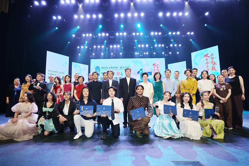 十强选手会师决赛,璀璨舞台放歌青春。6月15日晚,2025年“文化中国·水立方杯”中文歌曲大赛(北京赛区)决赛在北京语言大学梧桐会堂举行。大赛执委会主任、北京市政府侨办主任王都伟,北京语言大学副校长张宝钧,北京市委教育工委、北京市教委领导以及来自京津冀地区高校的代表老师出席了此次活动,张宝钧副校长为活动致辞。来自国家级艺术院团和高校的专家担任比赛现场评委,10名选手经过第一轮演唱评出前6名进入第二轮,最终决出金、银、铜奖。来自墨西哥的北京航空航天大学学生墨鸿雁以一曲《青藏高原》获得金奖,来自印度尼西亚的天津大学学生吴美惠和来自印度尼西亚的北京语言大学学生温菲菲获得银奖,来自加拿大的首都医科大学学生王敏行,来自韩国的北京语言大学学生权贤佑和来自印度尼西亚的中国传媒大学学生刘陈凰获得铜奖。墨鸿雁同学获得最佳风采奖。京内外8所高校获得优秀组织奖。随着获奖结果的公布,2025年“文化中国·水立方杯”中文歌曲大赛(北京赛区)决赛圆满落下帷幕。