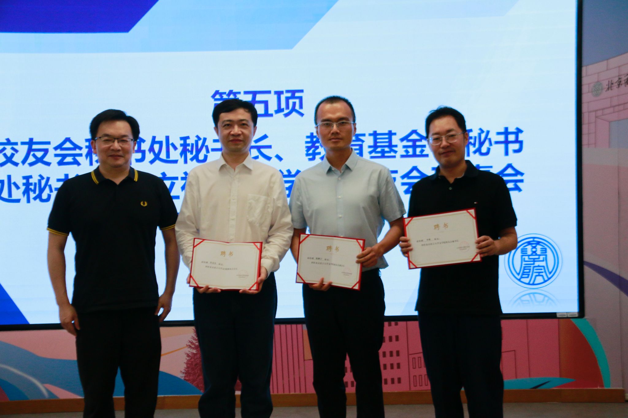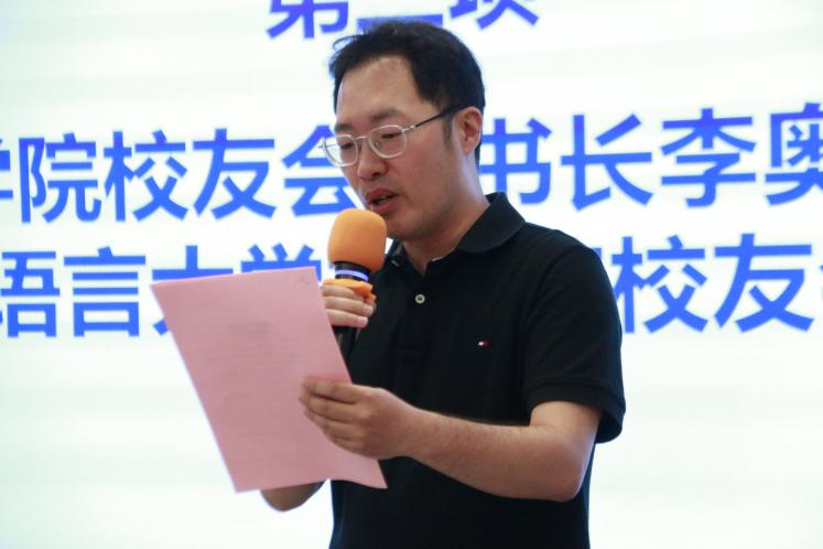 会上宣布了文学院校友会会长、副会长及秘书长名单。文学院校友会由程苏东担任首任会长,由刘非、袁胤婷、陈鹏宇担任副会长,秘书长为李奥,副秘书长为玄铮。李奥秘书长宣读了《北京语言大学文学院校友会章程》。