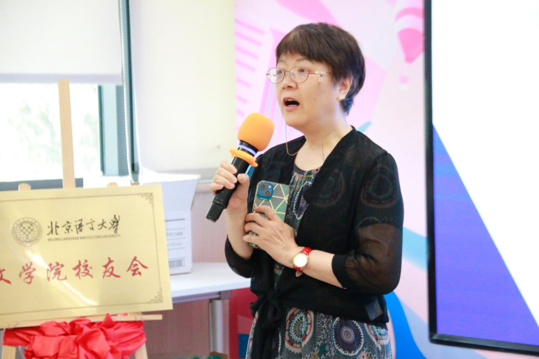 黄益方副校长代表学校致辞,向文学院校友会的成立表示热烈祝贺,强调学校对校友工作高度重视。他对文学院校友会提出了三点期待:第一,赓续精神血脉,传承北语基因,延续“德行言语,敦睦天下”的精神力量;第二,构建情感纽带,凝聚校友合力,使校友会成为每一位文学院校友的心灵港湾;第三,发挥各自优势,勇担社会责任,通过校友与母校的深度合作,助力学校学科建设和持续发展。他希望校友们能够以校友会为纽带,凝心聚力,为学院、学校的发展建言献策,共同续写未来发展新篇章。