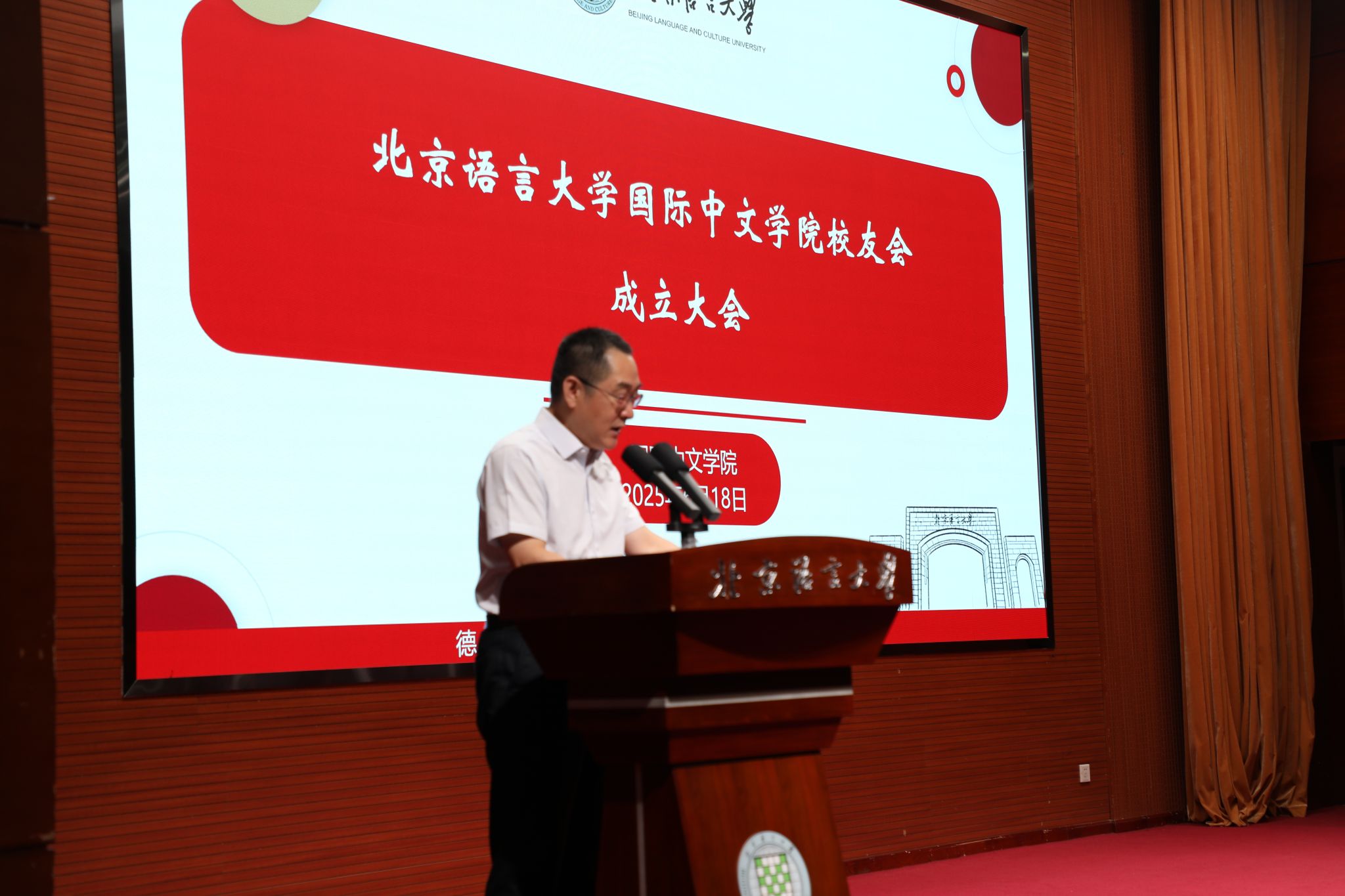 北语新闻网6月23日电(通讯员 陈愉洁 摄影 吴嘉怡 张钰)6月18日下午,国际中文学院校友会成立大会暨2025届毕业生联欢会在逸夫报告厅举行,279名毕业生迎来人生重要时刻。校党委常委、副校长、学校校友会会长黄益方出席大会,大会由国际中文学院党委书记梁彦民主持。