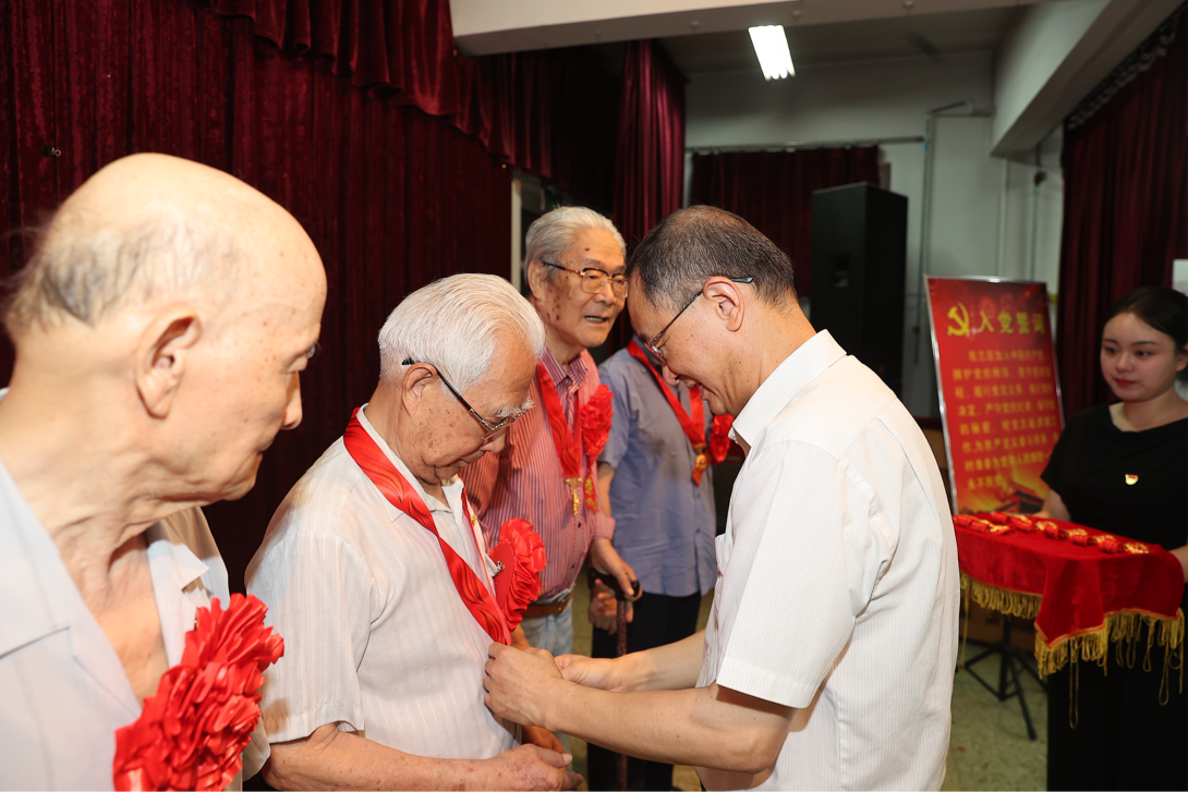 魏晖副书记宣读了《中共北京语言大学委员会关于颁发“光荣在党50年”纪念章的决定》,校领导为老党员们颁发纪念章,并合影留念。