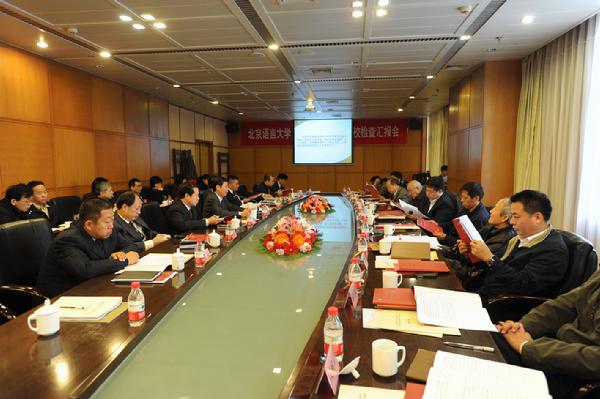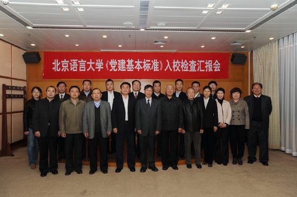 崔校长总结了学校事业改革发展的成果:学科建设取得重大突破;教育教学质量不断提升;学术研究成绩斐然;形成了完备的汉语国际教育体系;办学国际化水平不断提升。同时他指出了我校工作中还存在着不足和差距。崔校长强调,党建基本标准的检查是加强和促进学校党建工作的有效途径,是提升学校党建工作科学化水平的有力举措。学校党委将始终坚持以科学发展观为指导,坚持“围绕中心抓党建,抓好党建促发展”的工作思路,加快建设世界一流语言大学,以优异的成绩迎接党的十八大胜利召开!
