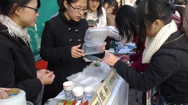 一位同学翻看着手中的宣传册说到:“这次环保物品校园展示活动让我学到了很多小知识,比如如何鉴别伪劣餐具,什么是密胺餐具,塑料袋的危害到底有多大…...并且填写调查问卷后还收到了制作精美的小礼物和环保手册!”
