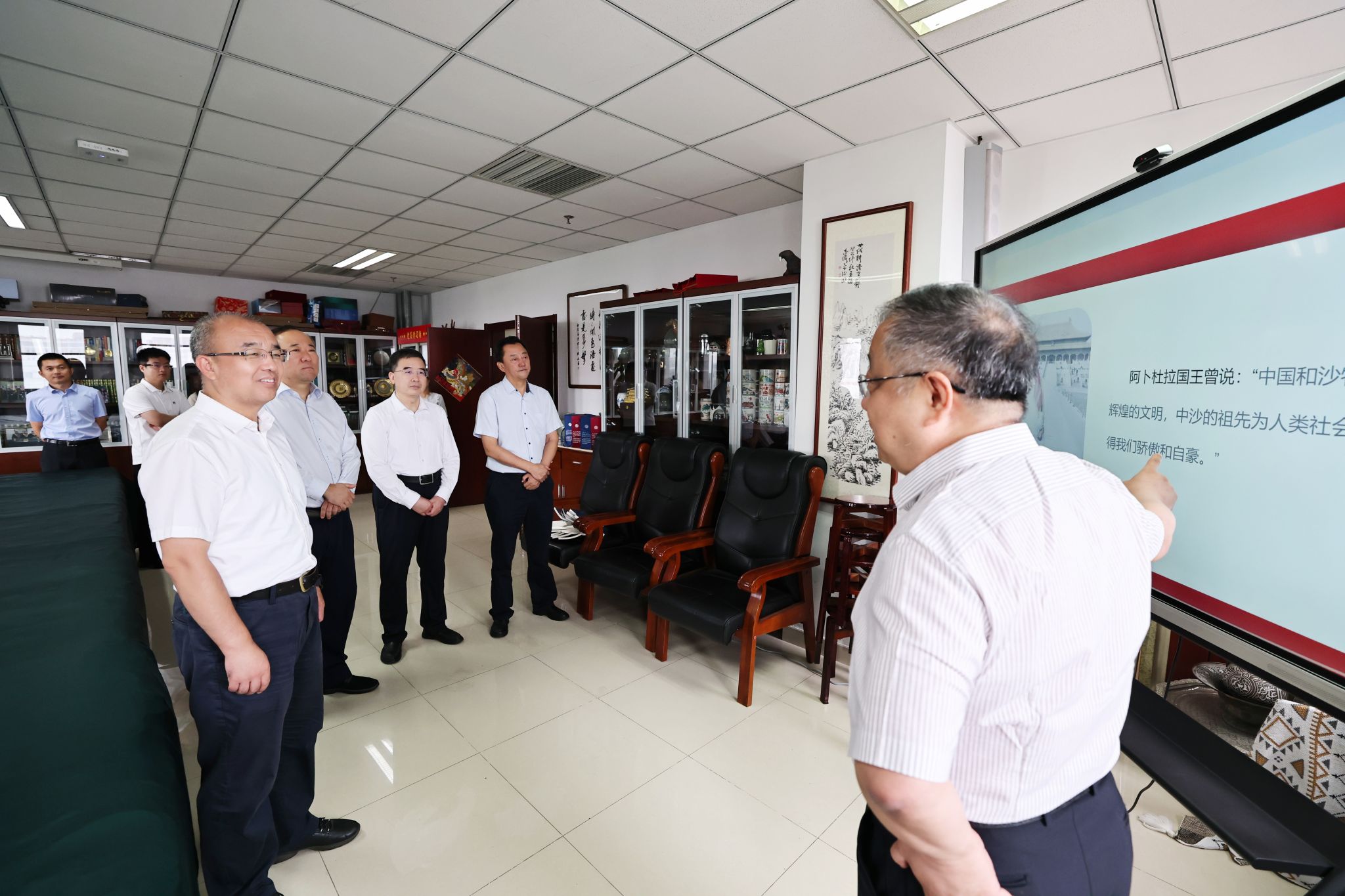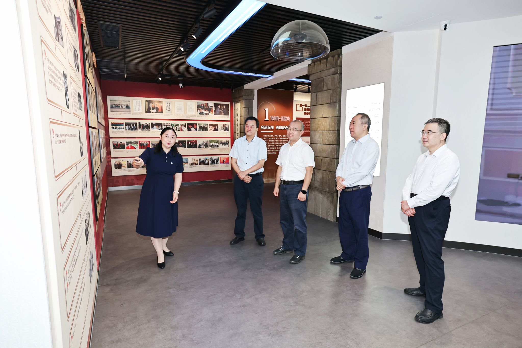 于英杰首先参观了校史馆及“一带一路”国家交流礼品展,了解了学校的历史使命、办学特色和发展成就,尤其是学校在服务国家战略、推动文明互鉴、“三强三新”学科建设、“语言+工程”人才培养等方面取得的成绩。