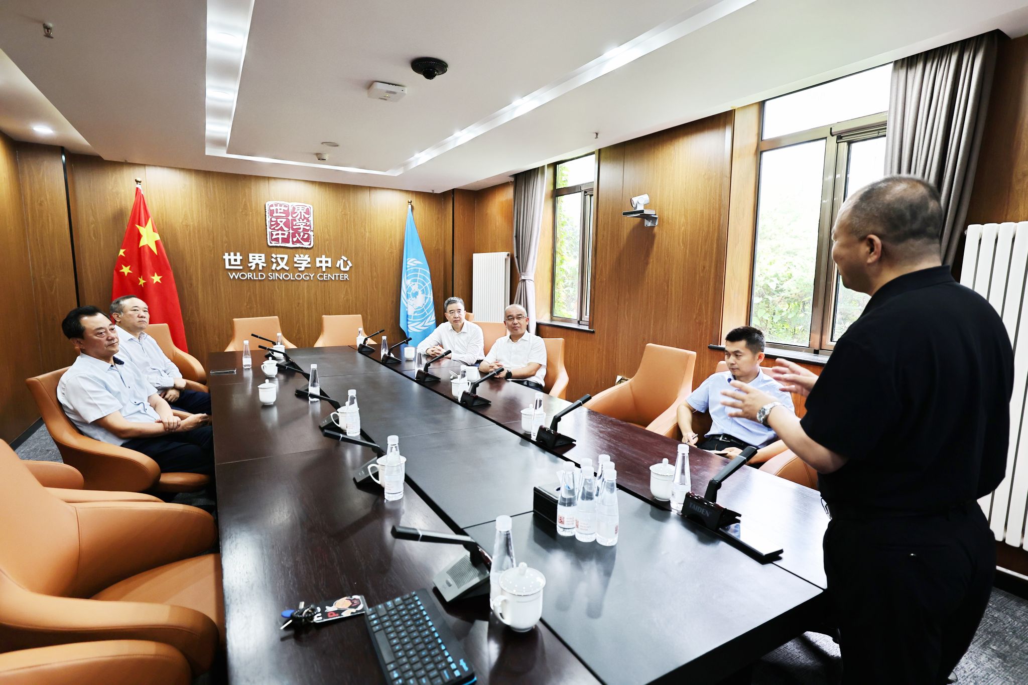 在汉学与中国学学院(一带一路研究院),于英杰听取了我校汉学与中国学学科发展、亚洲经典著作互译计划、中国文化译研网国家工程建设情况,了解世界汉学家理事会、世界汉学中心、世界汉学家大会等全球汉学家联络、协调、对话机制建设情况,观看全球汉学生态观测系统演示,并就来华留学生国情教育、队伍建设和政策保障等方面进行交流。