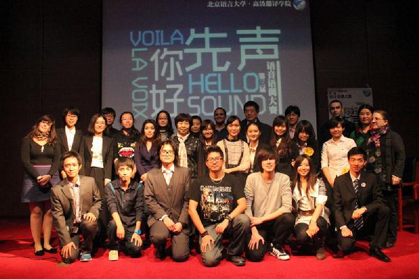 10月25日晚,高级翻译学院“你好,先‘声’” 第三届语音语调大赛在逸夫报告厅顺利结束。来自汉语学院的留学生西里尔、11法语系的张耀中和11法语系龚正分别问鼎了中、英、法三组的冠军,12法翻戴欣怡获得最佳人气奖。高级翻译学院领导、教师代表及中、英、法七名评委老师都来到比赛现场。