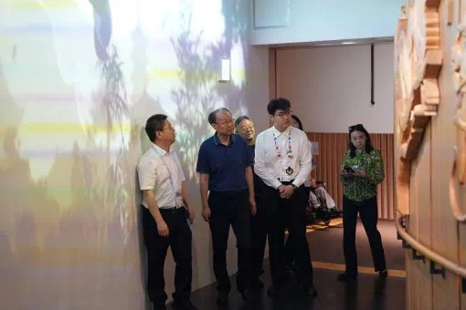 陈宇浩为中国残疾人联合会理事长周长奎提供讲解服务