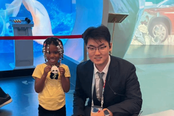 对于陈宇浩而言,大阪世博会是他继北京冬奥会之后,第二次投身大型的国际志愿服务活动之中。在一次上岗服务过程中,他注意到有一家带着孩子来参观的美国游客,一家人在中国馆内仔细端详着各项展品,互相比划讨论着,似乎有着浓厚的兴趣,却又难以完全理解。陈宇浩主动上前,询问一家人是否需要讲解,得到肯定的回复后,他用流利的英语耐心介绍了展馆方方面面的内容。一个多小时过去,不觉间陈宇浩已经领着一家人细致地参观了中国馆的全貌。当一家人不断表示着感谢时,孩子的父亲又说:中国馆的内容非常有意思,可能我女儿还不能完全理解,希望以后我们能一起去中国看看。对于年幼的孩子,抽象的文化内涵或许难以理解。陈宇浩灵机一动,拿出了一个特别的玩偶——藏在竹筒里的小熊猫。“那个小女孩把小熊猫从竹筒里拿出来时,眼睛瞬间亮了起来!”陈宇浩回忆道,那一刻他深受触动,“我们的文化何尝不是如此?外在也许并不总是引人瞩目,甚至似乎令国际游客难以理解,但当你深入其中,就能发现它无与伦比的魅力。作为大阪世博会的志愿者,我们就是那个引导外国游客们‘打开竹筒’,发现中国文化之美的人。”陈宇浩生动诠释了我们青年一辈该如何将“讲好中国故事”落在细微处,用真诚和巧思让文化传播润物无声。