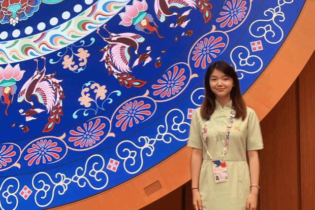 在大阪世博会中国馆的互动展区,蔡晓倩望着眼前三四个不同肤色的孩子指着“二十四节气”展项露出困惑不解的表情时,下意识回想起了今年四月份北语第二十届世界文化节时向留学生朋友们介绍二十四节气的情景。而现在,她又获得了在世博会上向更多天南海北的游客朋友们再次讲述“二十四节气”故事的机会,这一次,她变得更加自信坚定、更加游刃有余。蔡晓倩不禁感慨:“原来北语世界文化节上的每一次分享与每一场对话,都是我在世博会讲解服务前的预演,北语给足了我展示的勇气与自信。”那些被留学生们纠正过的发音、被分享过的家乡食谱,让她在世博会的舞台上更加从容坚定。“世博会不是终点,是一场锻炼我们进行跨文化对话的接力赛。”