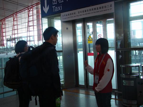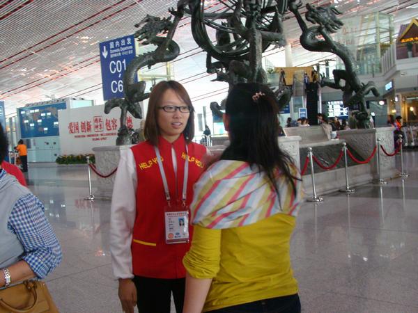 10月6日清晨6:15,当北京城还在一片寂静中的时候,我校志愿总队的袁晓灿和郭美婧两名志愿者已坐上去首都国际机场的大巴,开始了她们一天的笑脸志愿服务。